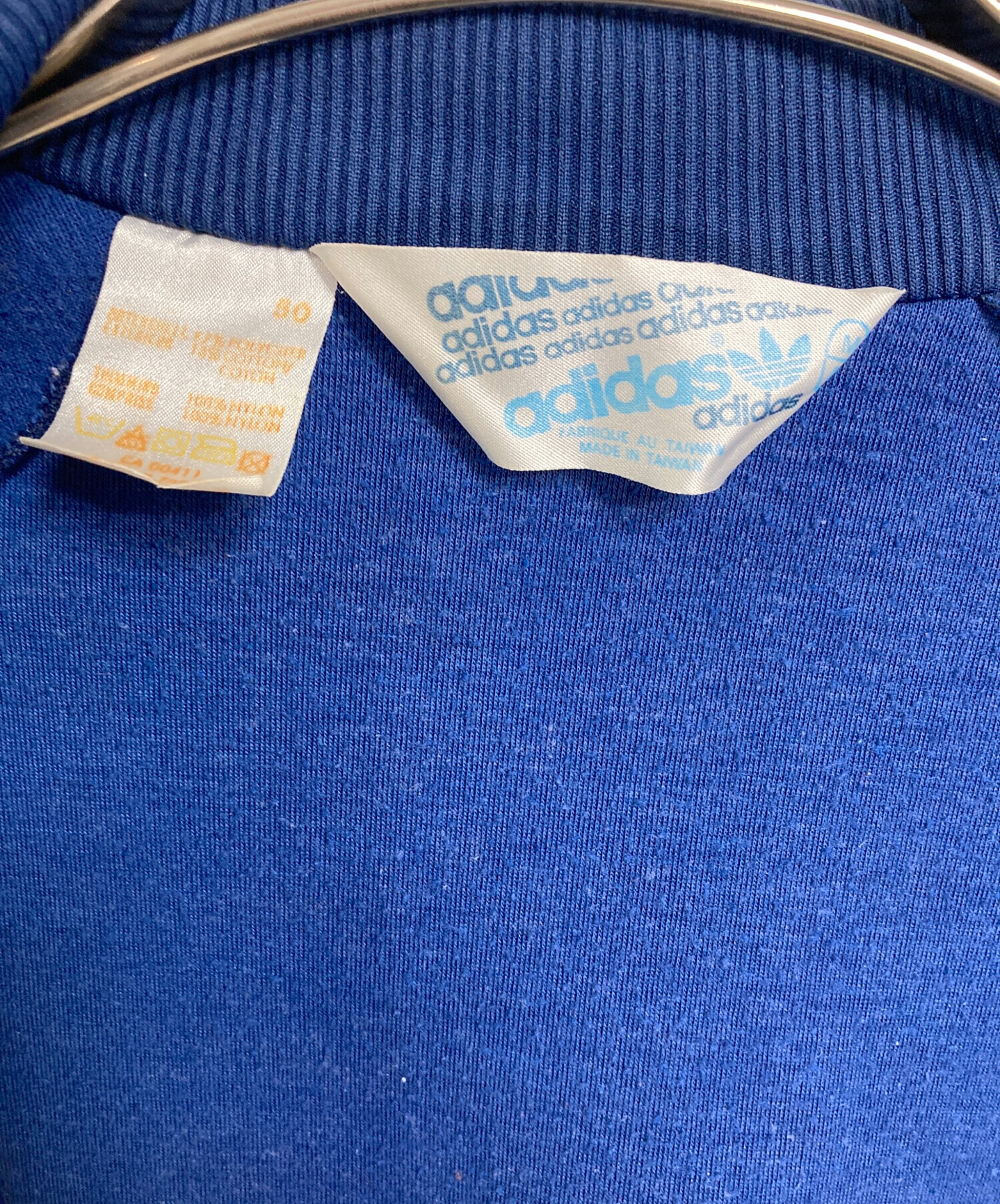 • adidas(アディダス)adidas (アディダス) 【古着】台湾製80’S トラックジャケット 80年代 三角タグ ネイビー サイズ:Mの古着・服飾アイテム 金具部分剥がれあり