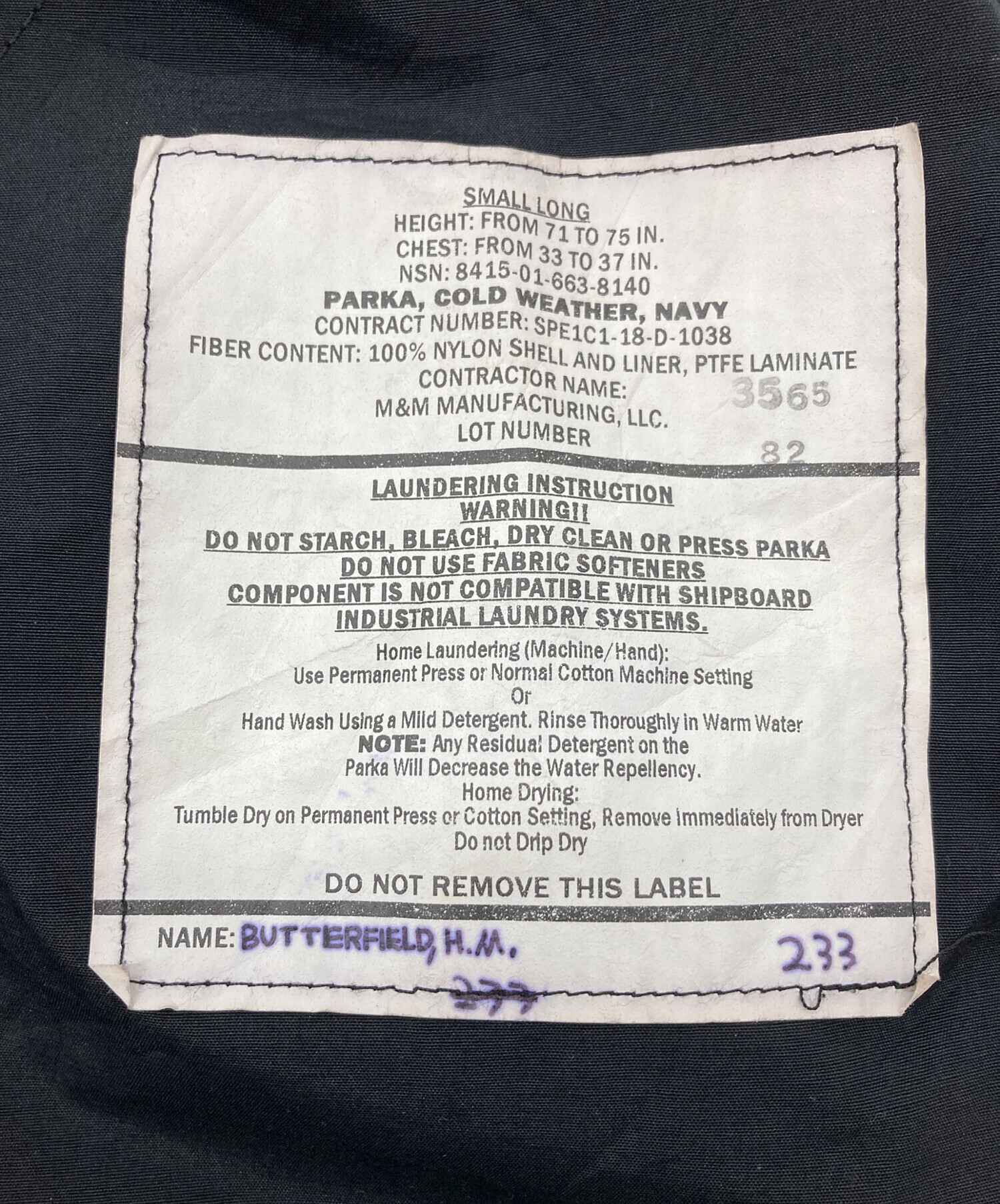 | 型番 | 8415-01-663-8140 |