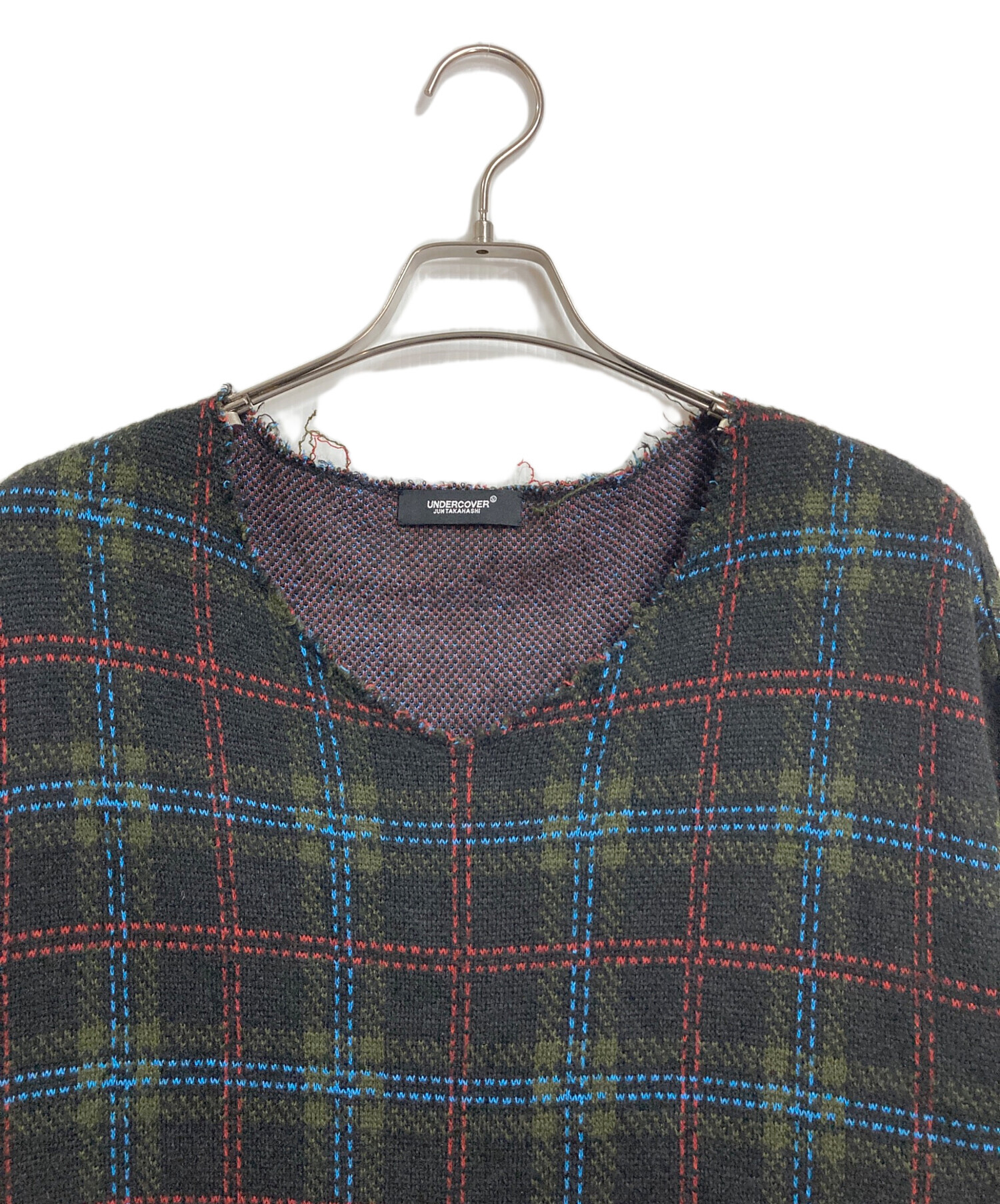• UNDERCOVER(アンダーカバー)UNDERCOVER (アンダーカバー) チェックVネックニット 18SS グリーン サイズ:3の古着・服飾アイテム 毛羽立ちあり