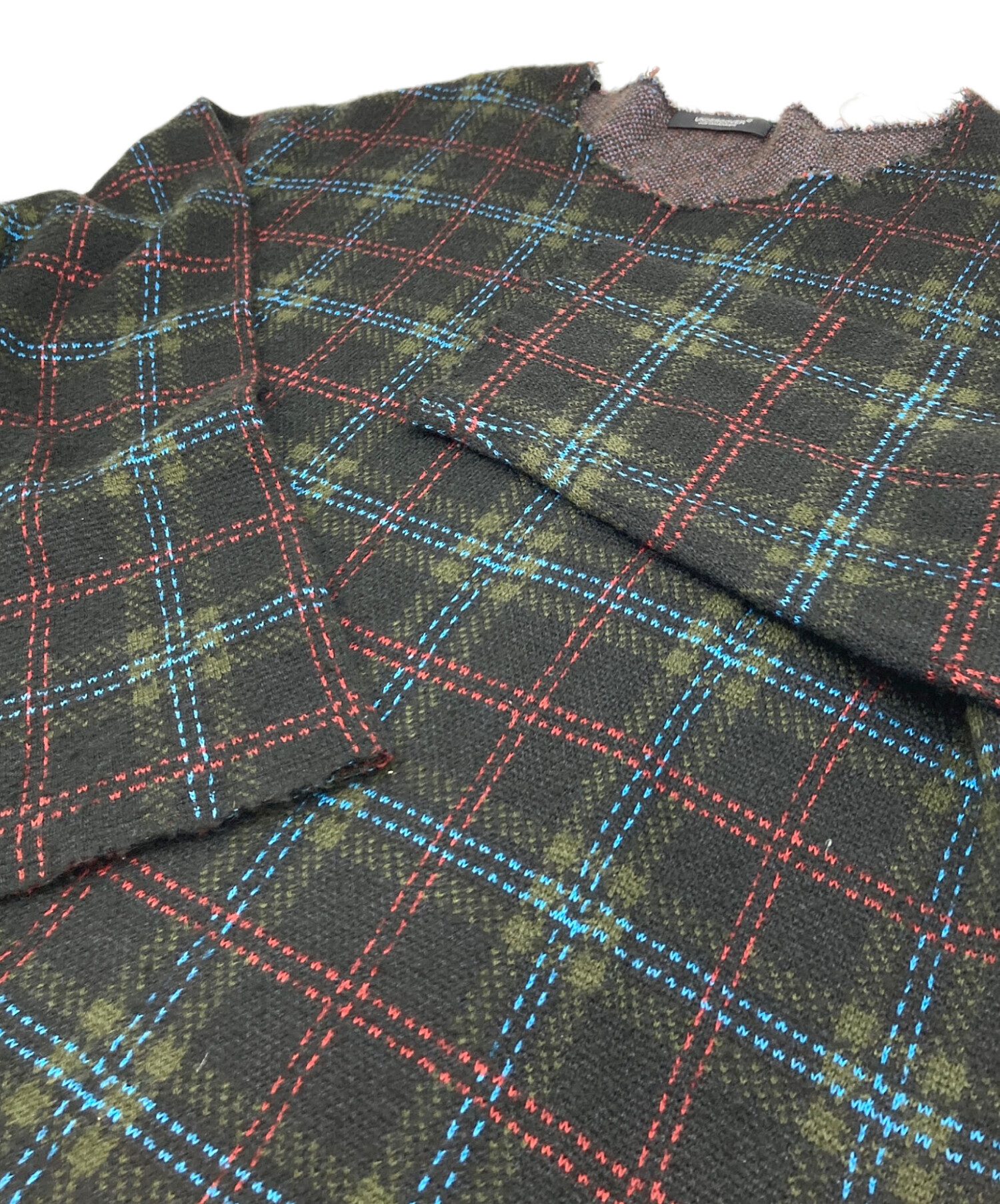 • UNDERCOVER(アンダーカバー)UNDERCOVER (アンダーカバー) チェックVネックニット 18SS グリーン サイズ:3の古着・服飾アイテム 毛羽立ちや毛玉あり