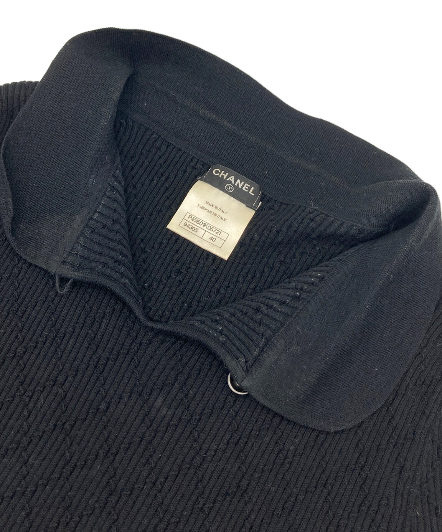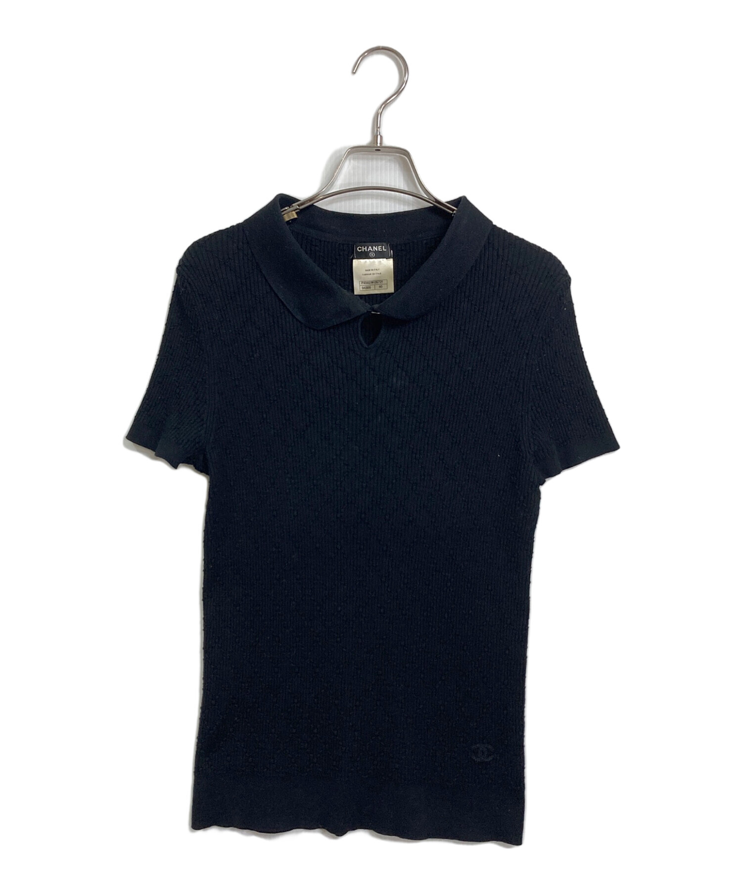 | スタッフコメント | フロントボタンのココマークが目を惹くシャネルの半袖リブニットです。上質なコットン100%素材を使用し、リブ編みが美しいシルエットを演出します。シャネルを象徴するブラックカラーは着回しやすく、サマーニットとして幅広いスタイルで活躍します。 |