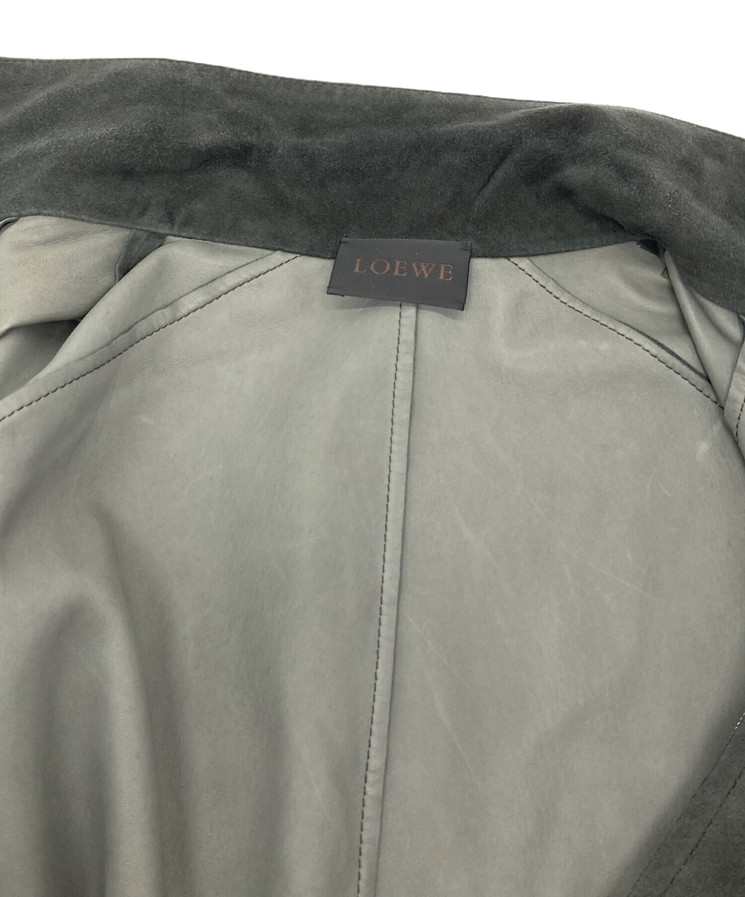 • LOEWE(ロエベ)LOEWE (ロエベ) ディアスキンスウェードコート ロングコート レザーコート アウター ライトアウター ダブルジップ 鹿革 グレー サイズ:38の古着・服飾アイテム 使用感あり