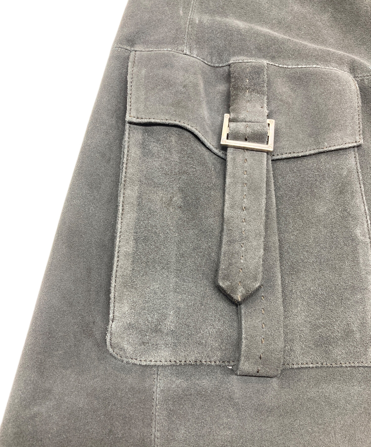 • LOEWE(ロエベ)LOEWE (ロエベ) ディアスキンスウェードコート ロングコート レザーコート アウター ライトアウター ダブルジップ 鹿革 グレー サイズ:38の古着・服飾アイテム 右ポケットヨゴレ・アタリスレあり