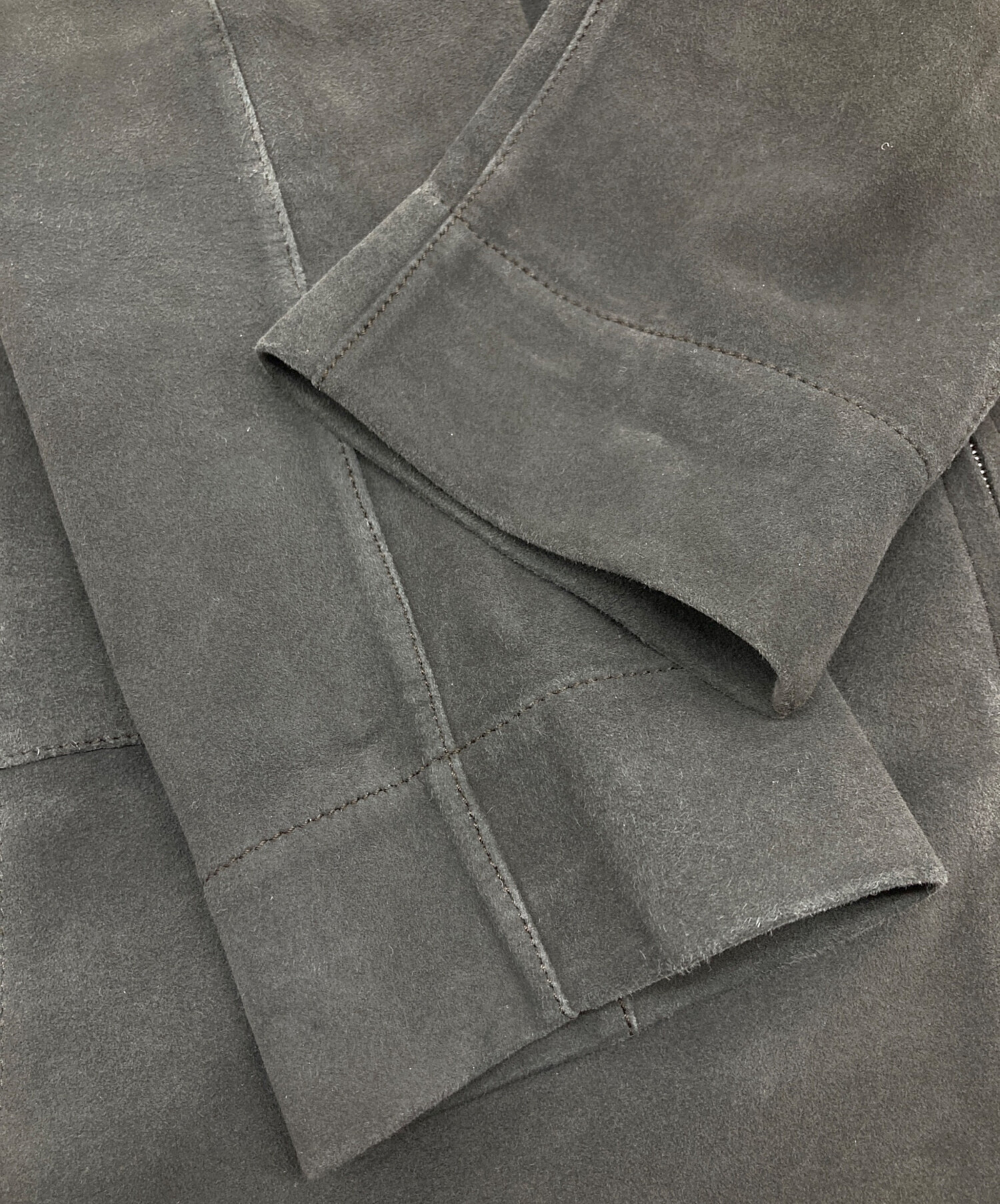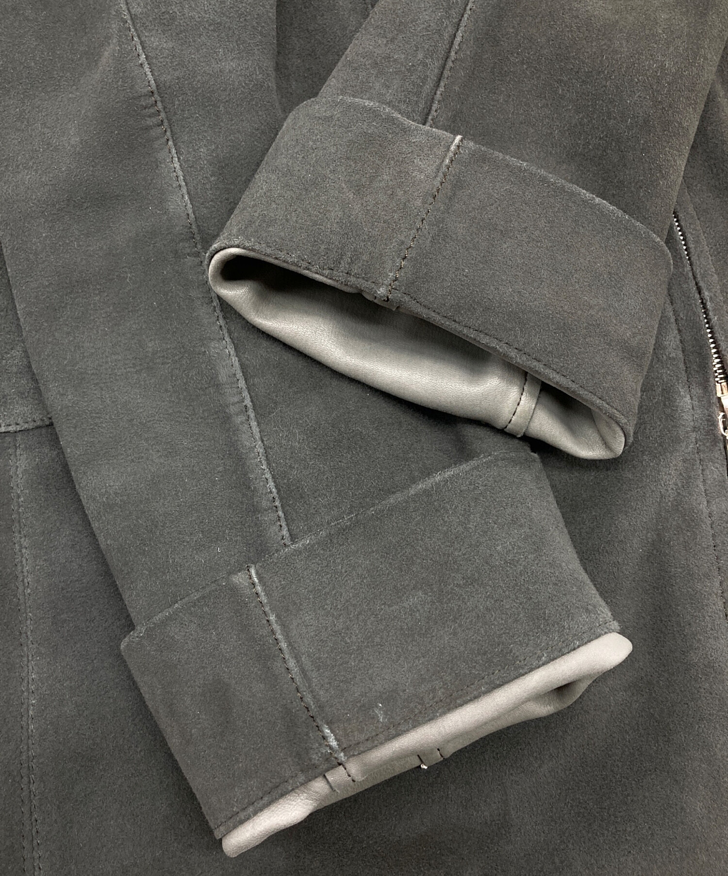 • LOEWE(ロエベ)LOEWE (ロエベ) ディアスキンスウェードコート ロングコート レザーコート アウター ライトアウター ダブルジップ 鹿革 グレー サイズ:38の古着・服飾アイテム 各所アタリスレあり