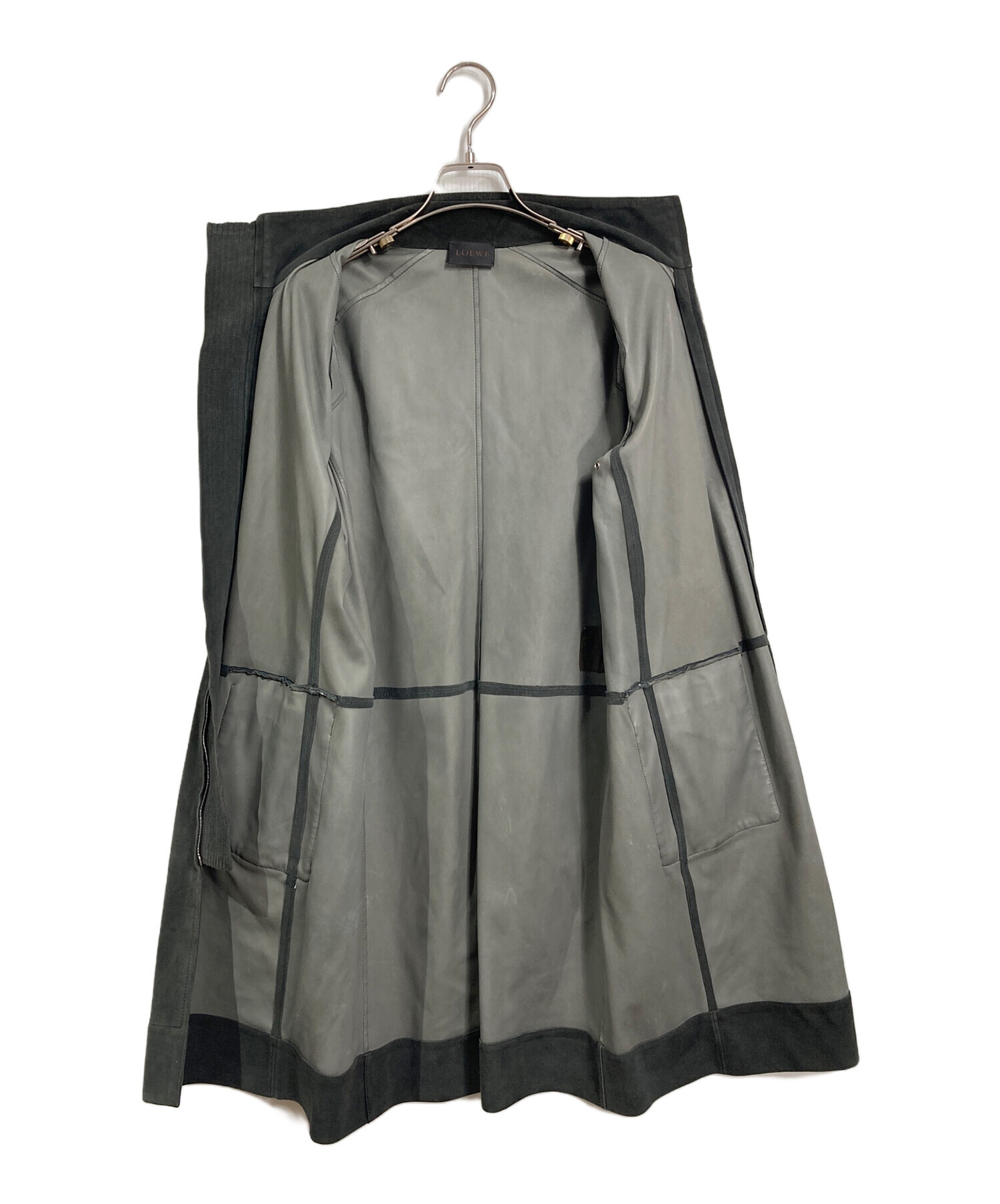 • LOEWE(ロエベ)LOEWE (ロエベ) ディアスキンスウェードコート ロングコート レザーコート アウター ライトアウター ダブルジップ 鹿革 グレー サイズ:38の古着・服飾アイテム 各所アタリスレ・ヨゴレあり