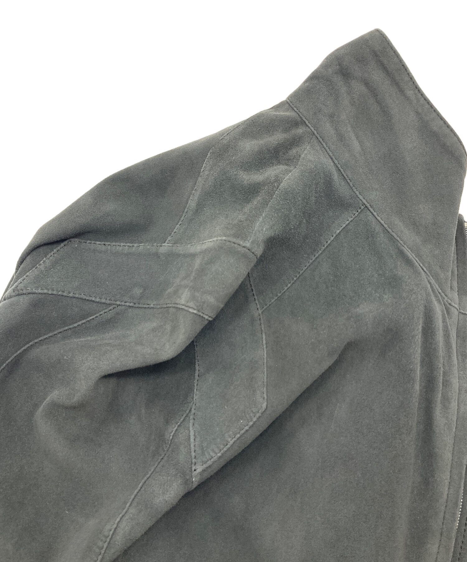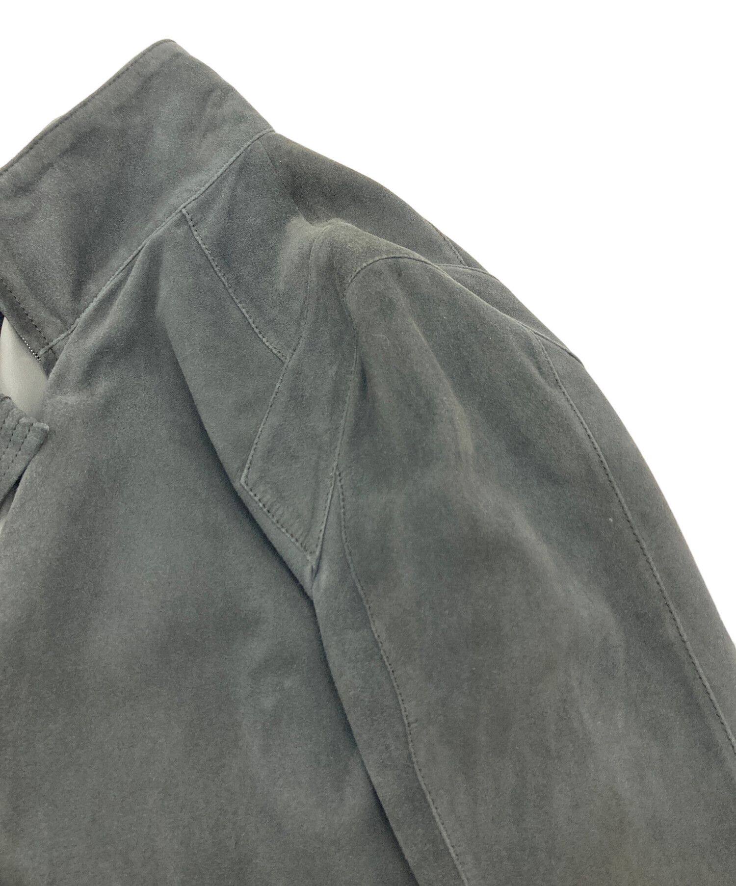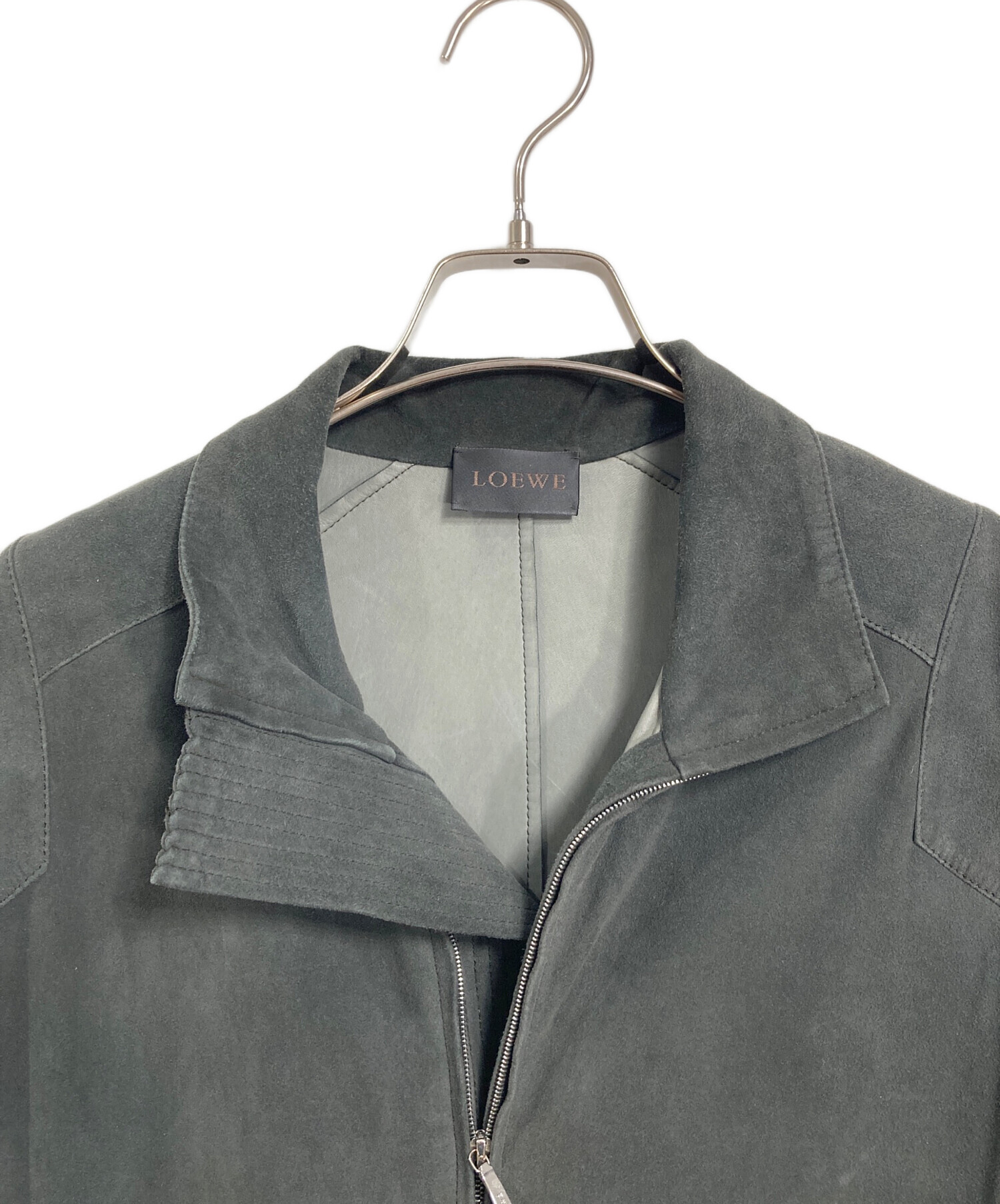 • LOEWE(ロエベ)LOEWE (ロエベ) ディアスキンスウェードコート ロングコート レザーコート アウター ライトアウター ダブルジップ 鹿革 グレー サイズ:38の古着・服飾アイテム 肩使用感あり