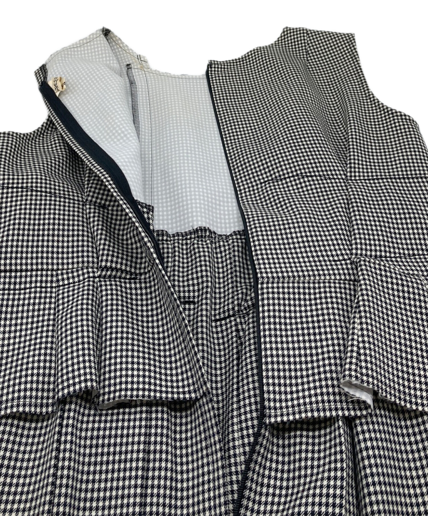• COMME des GARCONS(コムデギャルソン)COMME des GARCONS (コムデギャルソン) ノースリーブ ギンガムチェックワンピース ホワイト×ブラック サイズ:Sの古着・服飾アイテム 両脇ヨゴレ内部ヨゴレあり
