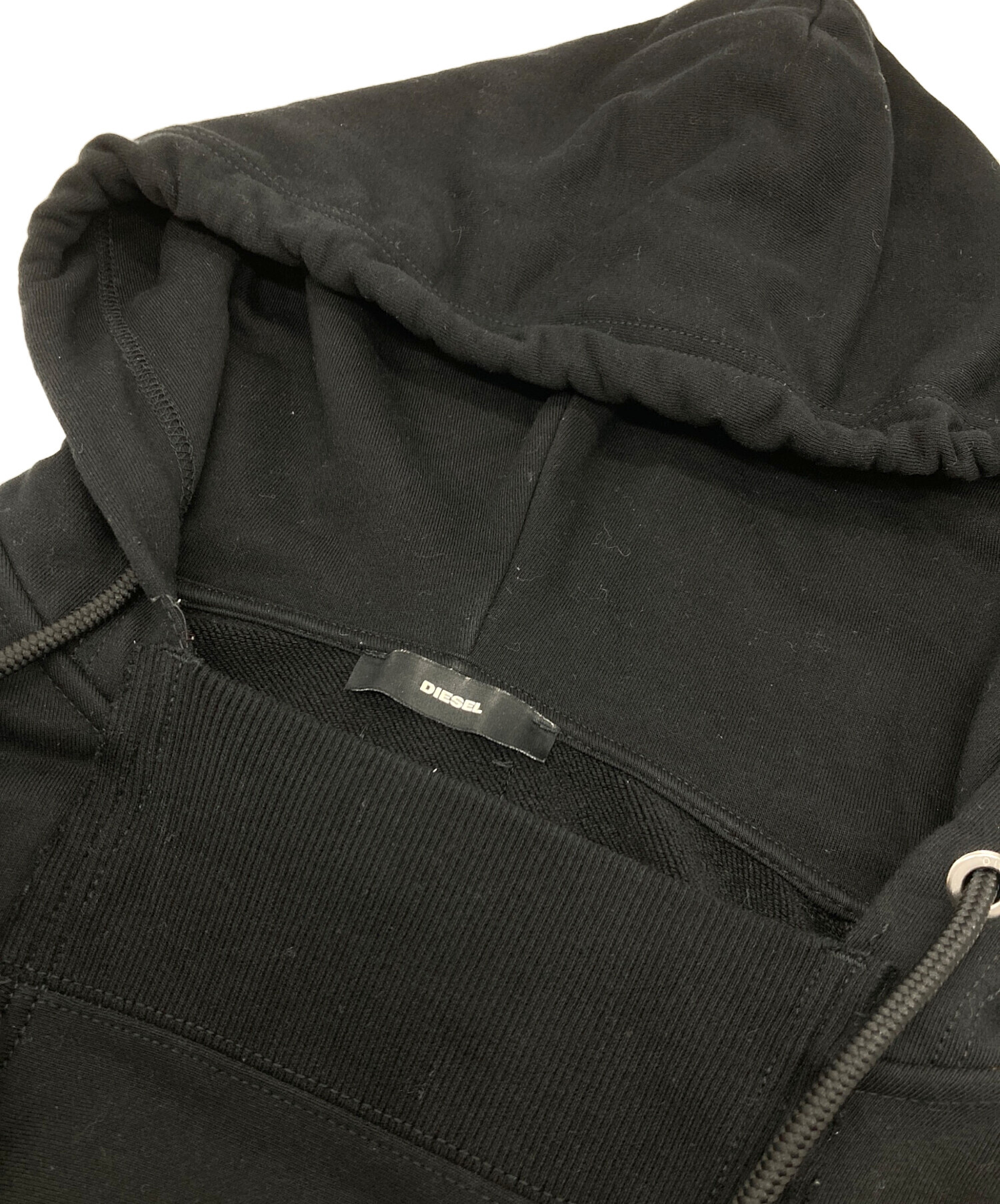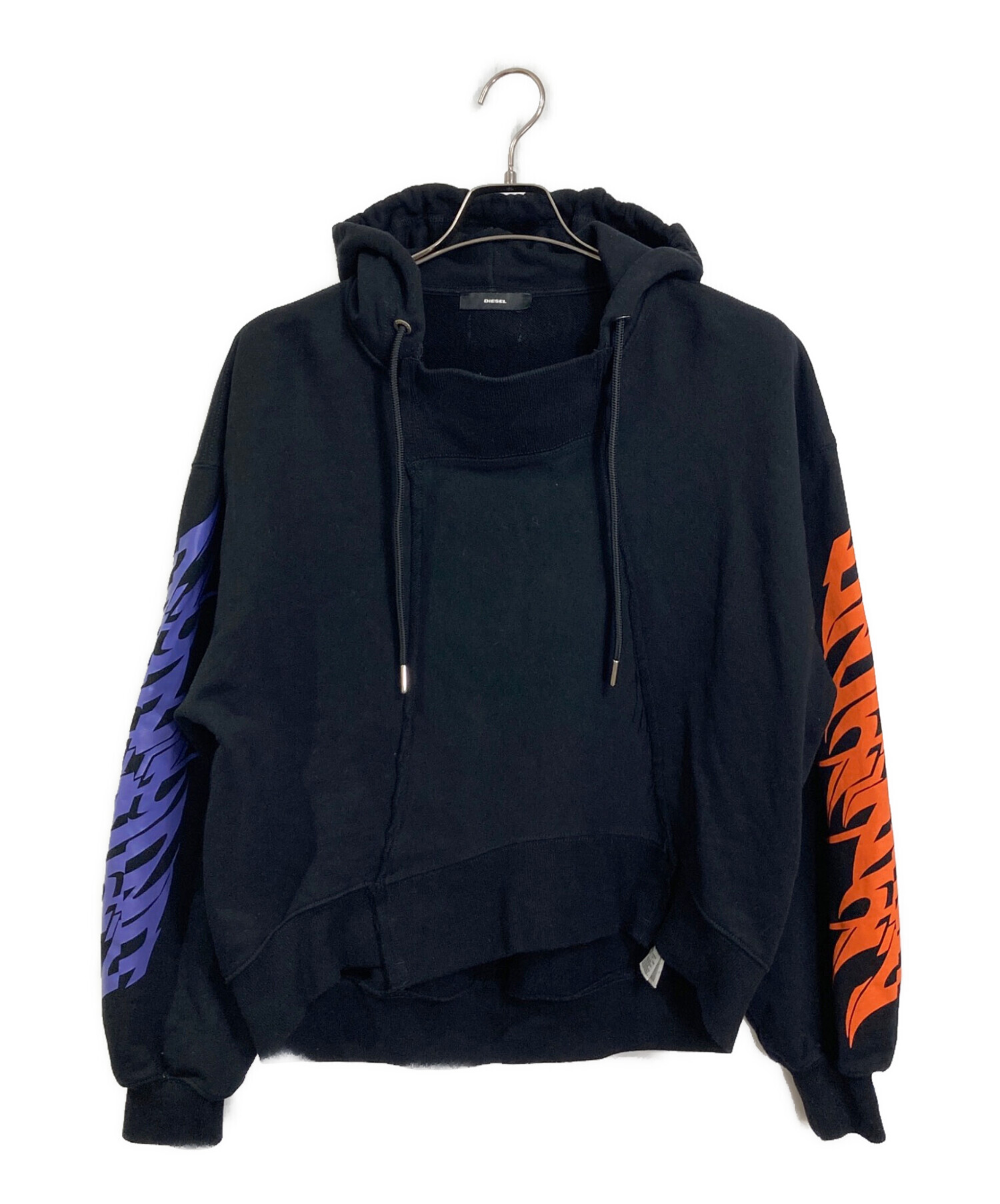 • DIESEL(ディーゼル)DIESEL (ディーゼル) プルオーバーパーカー 袖プリントパーカー ブラック サイズ:XSの古着・服飾アイテム スレやヨゴレあり