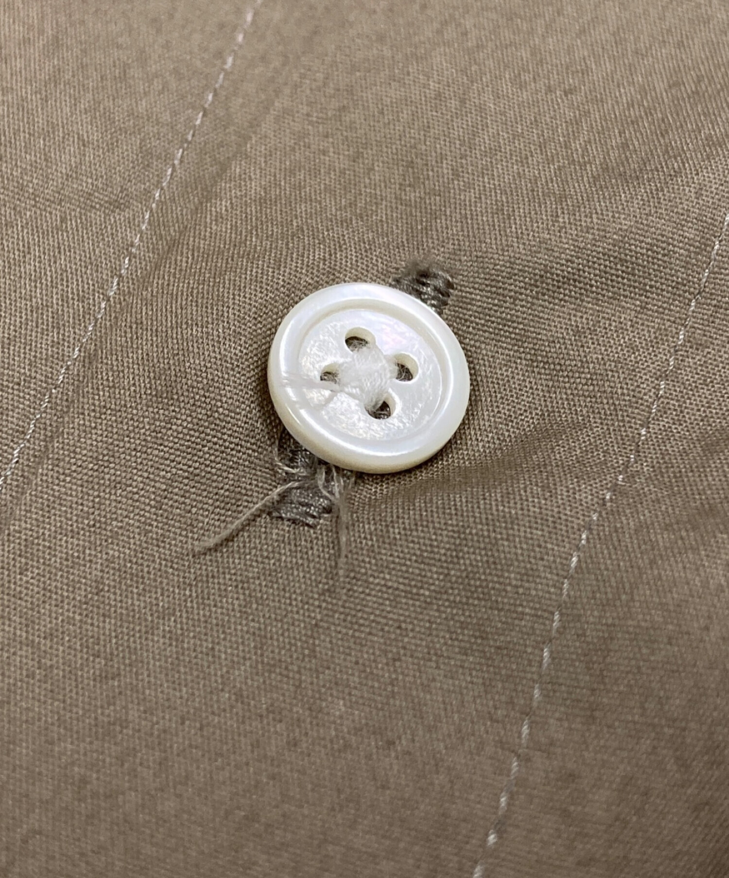 目立つシミや汚れ、におい等がある場合は商品画像や説明文にて極力表記させていただいておりますが、中古品という商品の特性上、全ての瑕疵や不備、洋服直し箇所を撮影・記載をすることは難しくなっております。また、ほとんどのアイテムは店頭と併売しておりますため、出品掲載時からコンディションが変動している場合もございます。あらかじめご了承くださいませ。
