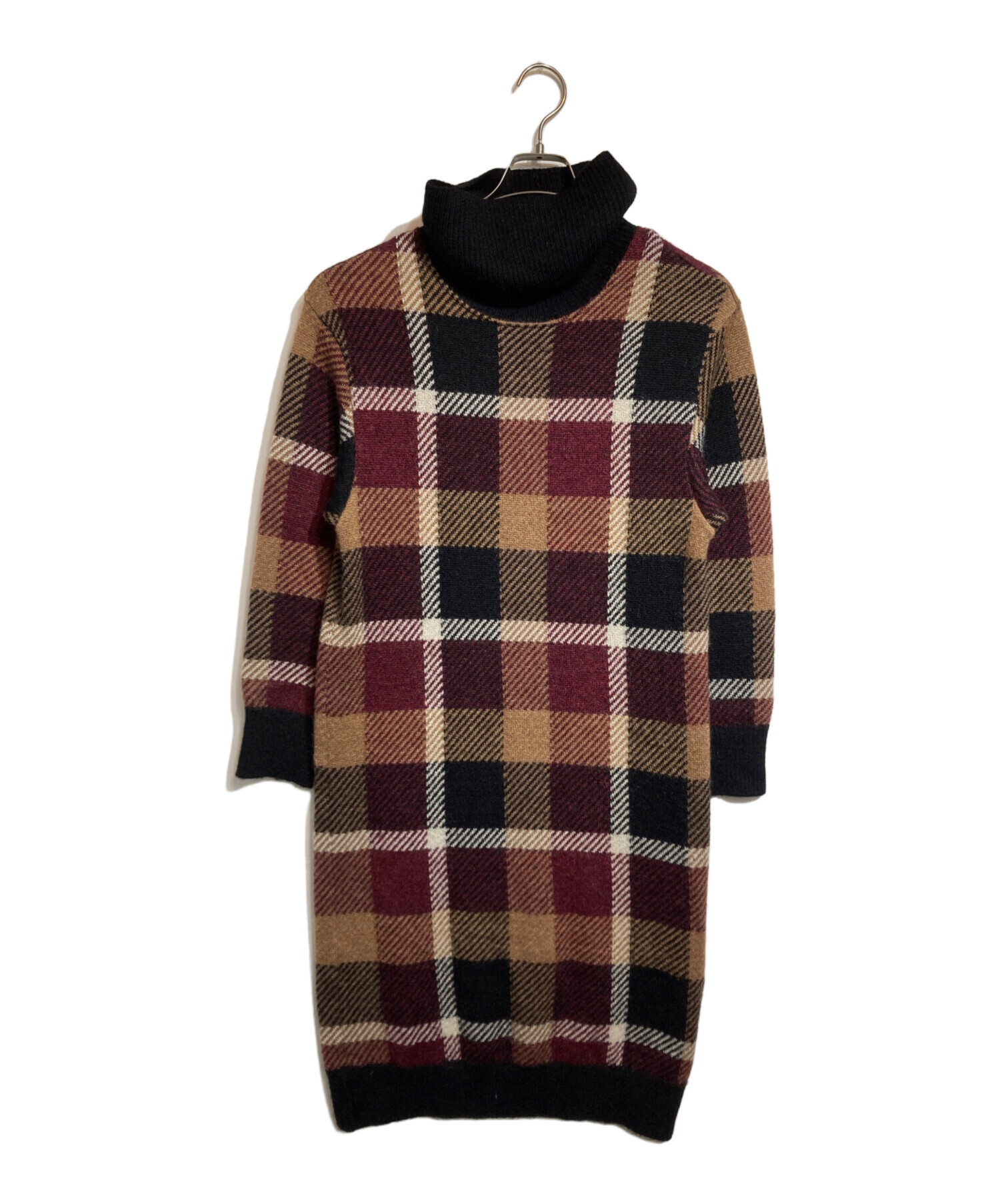 • BLUE LABEL CRESTBRIDGE(ブルーレーベルクレストブリッジ)BLUE LABEL CRESTBRIDGE (ブルーレーベルクレストブリッジ) チェックジャカードニットワンピース ブラウン サイズ:38の古着・服飾アイテム ホツレ有