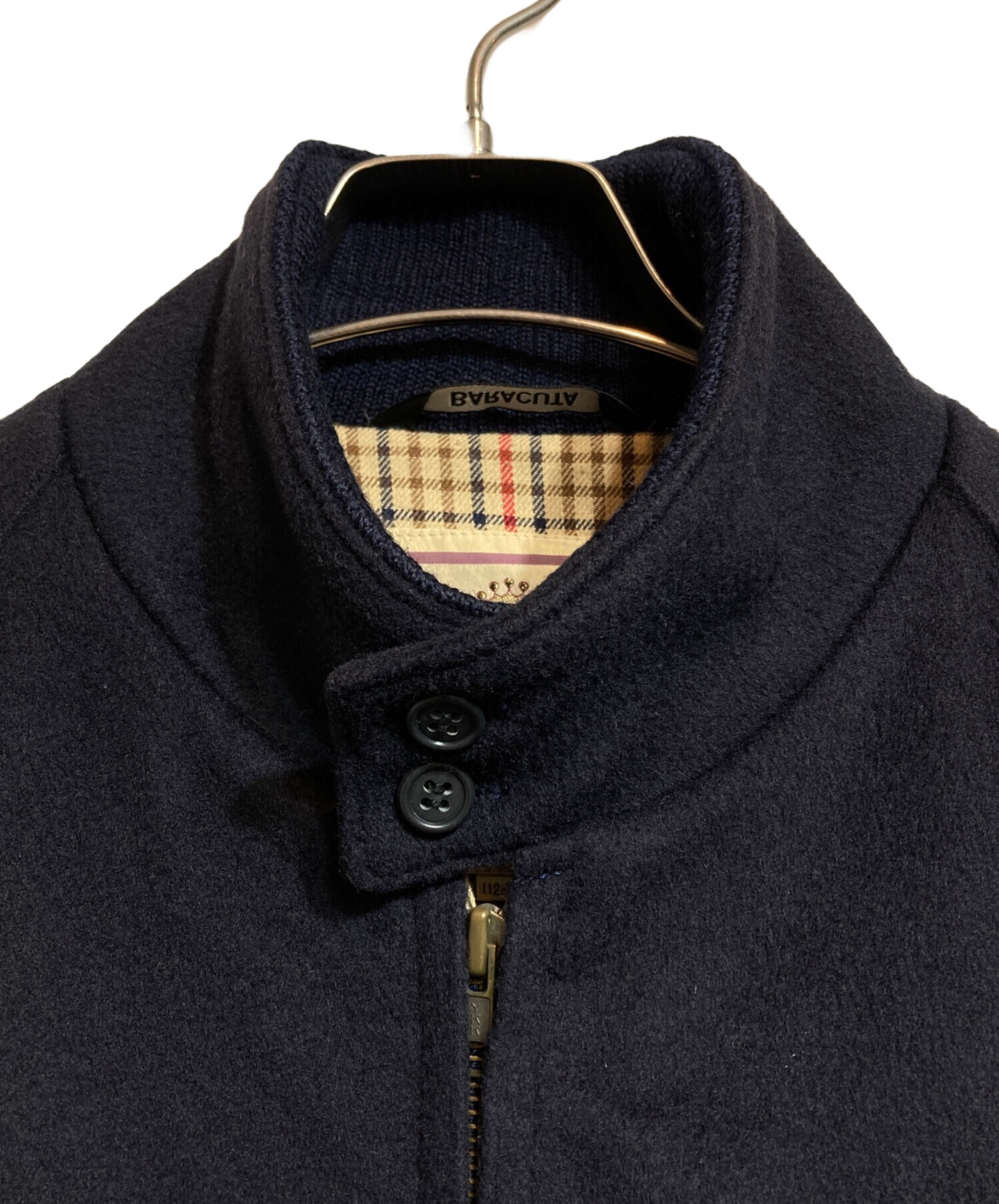 • BARACUTA(バラクータ)BARACUTA (バラクータ) ウールカシミヤハリントンジャケット ネイビー サイズ:44の古着・服飾アイテム ヤブレ有