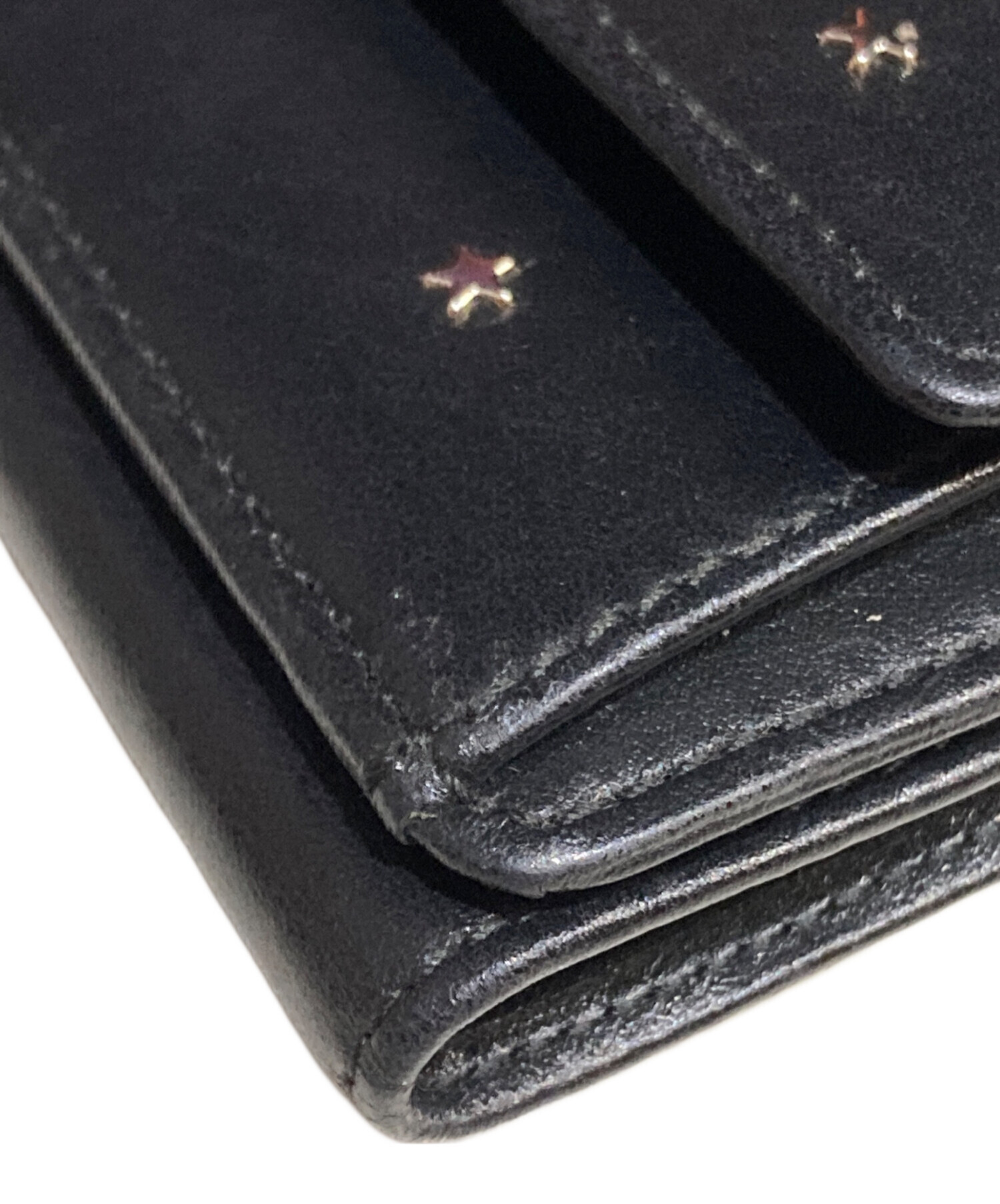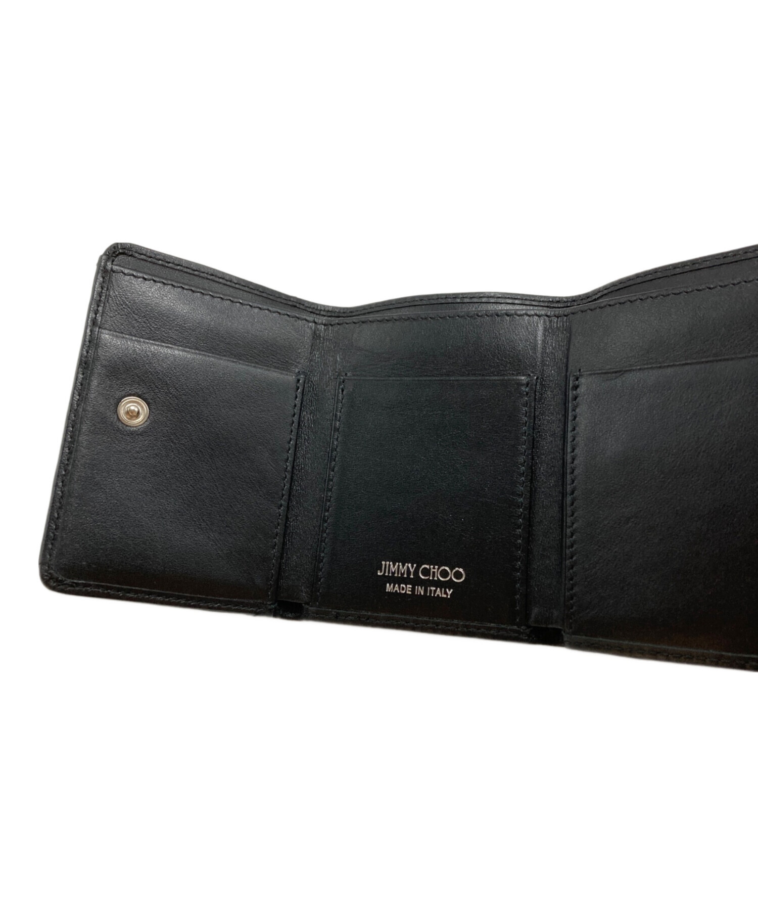 • JIMMY CHOO(ジミーチュウ)JIMMY CHOO (ジミーチュウ) スタースタッズ3つ折り財布 ブラックの古着・服飾アイテム スレ、ヨゴレ有