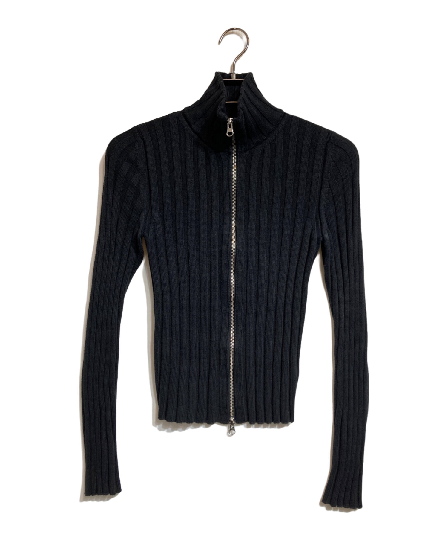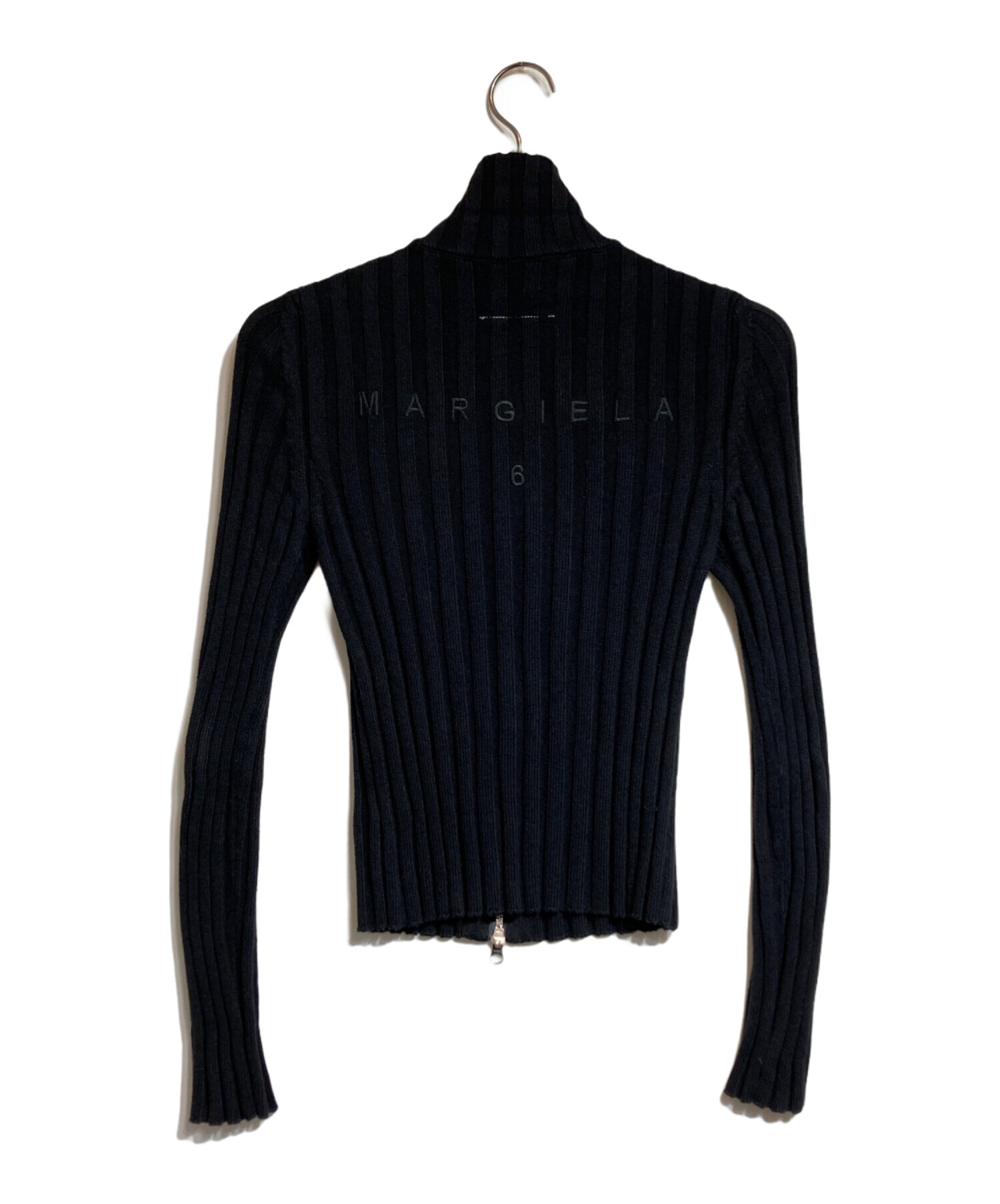 • MM6 Maison Margiela(エムエムシックスメゾンマルジェラ)MM6 Maison Margiela (エムエムシックスメゾンマルジェラ) LOGO RIBBED ZIP SWEATER ブラック サイズ:Sの古着・服飾アイテム ヨゴレ有