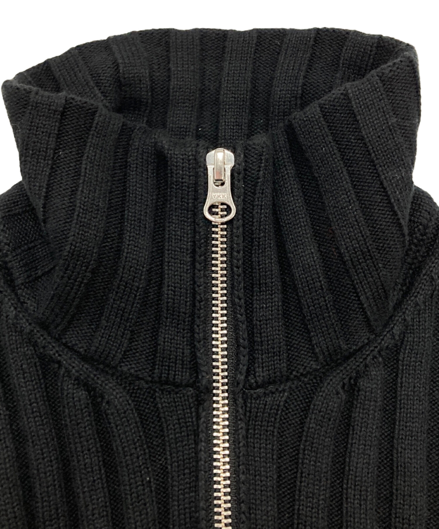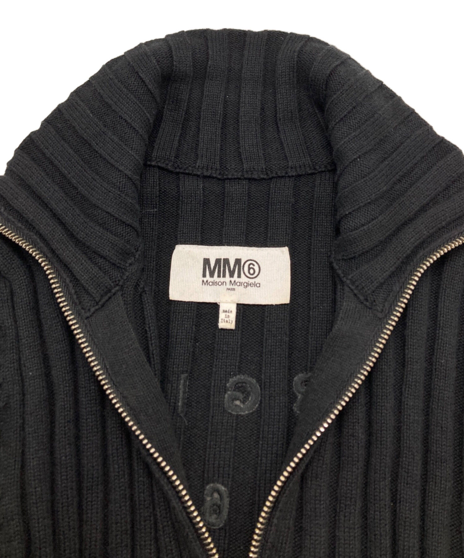 • MM6 Maison Margiela(エムエムシックスメゾンマルジェラ)MM6 Maison Margiela (エムエムシックスメゾンマルジェラ) LOGO RIBBED ZIP SWEATER ブラック サイズ:Sの古着・服飾アイテム 毛羽立ち、ホツレ有