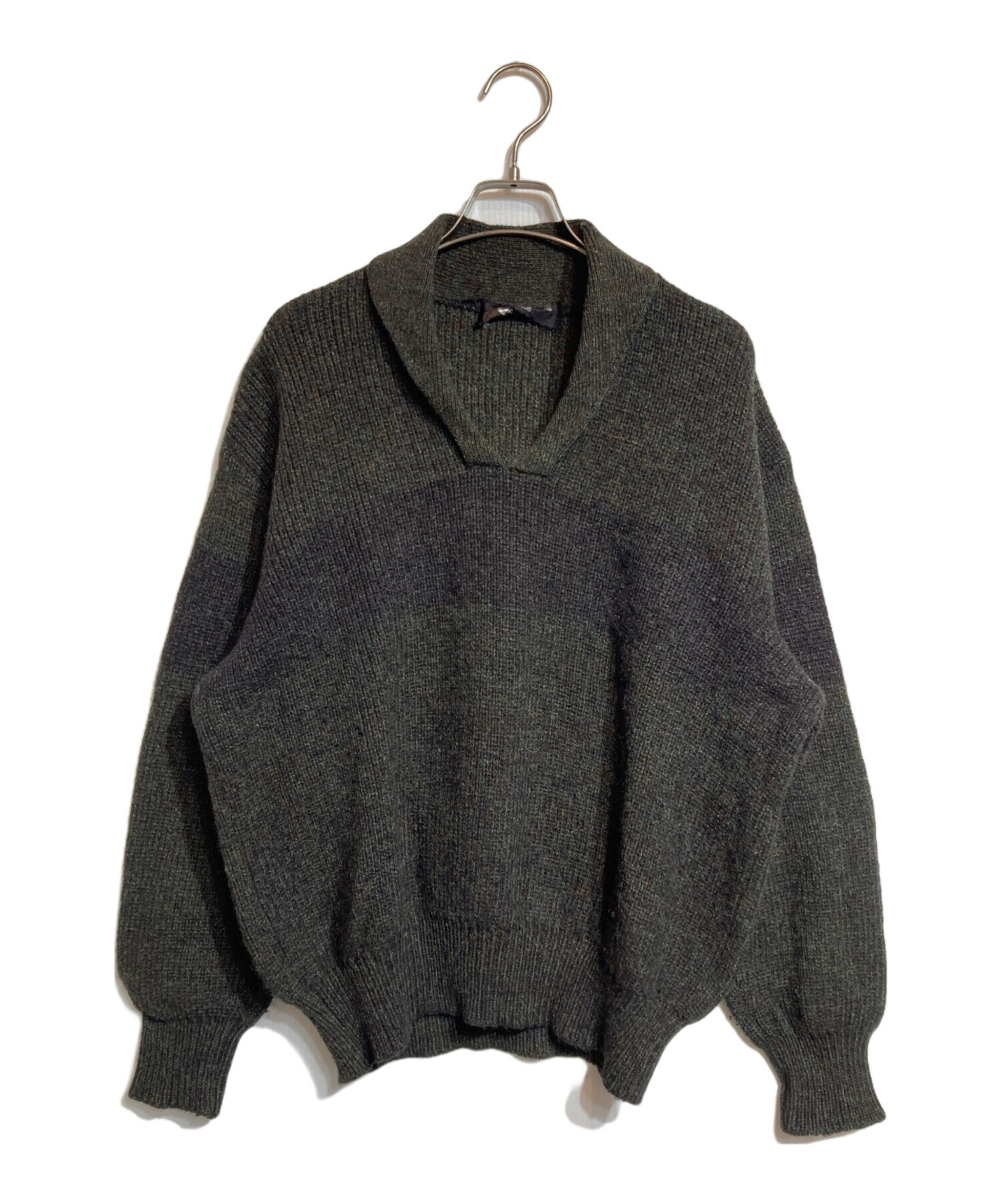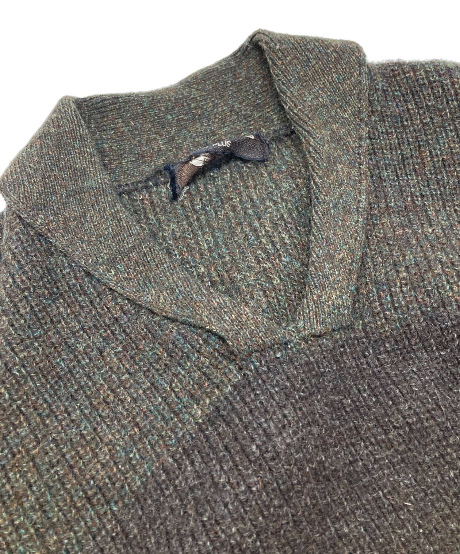 • COMME des GARCONS HOMME PLUS(コムデギャルソンオムプリュス)COMME des GARCONS HOMME PLUS (コムデギャルソンオムプリュス) ラインスキッパーニット グリーン×ブラウン サイズ:FREEの古着・服飾アイテム 毛羽立ち有
