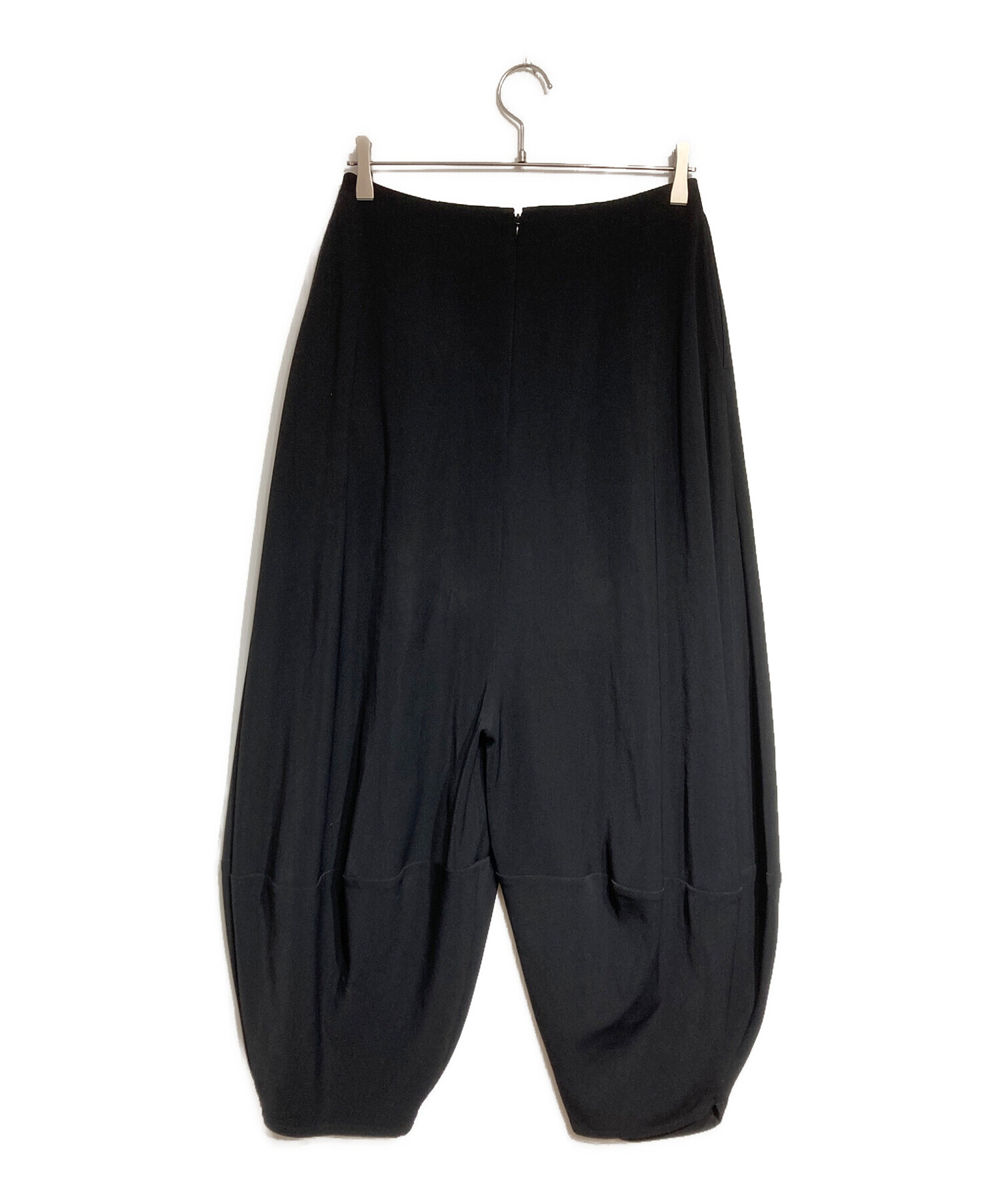| スタッフコメント | 裾の絞りと独特な膨らみが魅力のハーレムパンツ。落ち感のあるブラック生地がモードな印象を与え、体型カバーも叶えます。 |