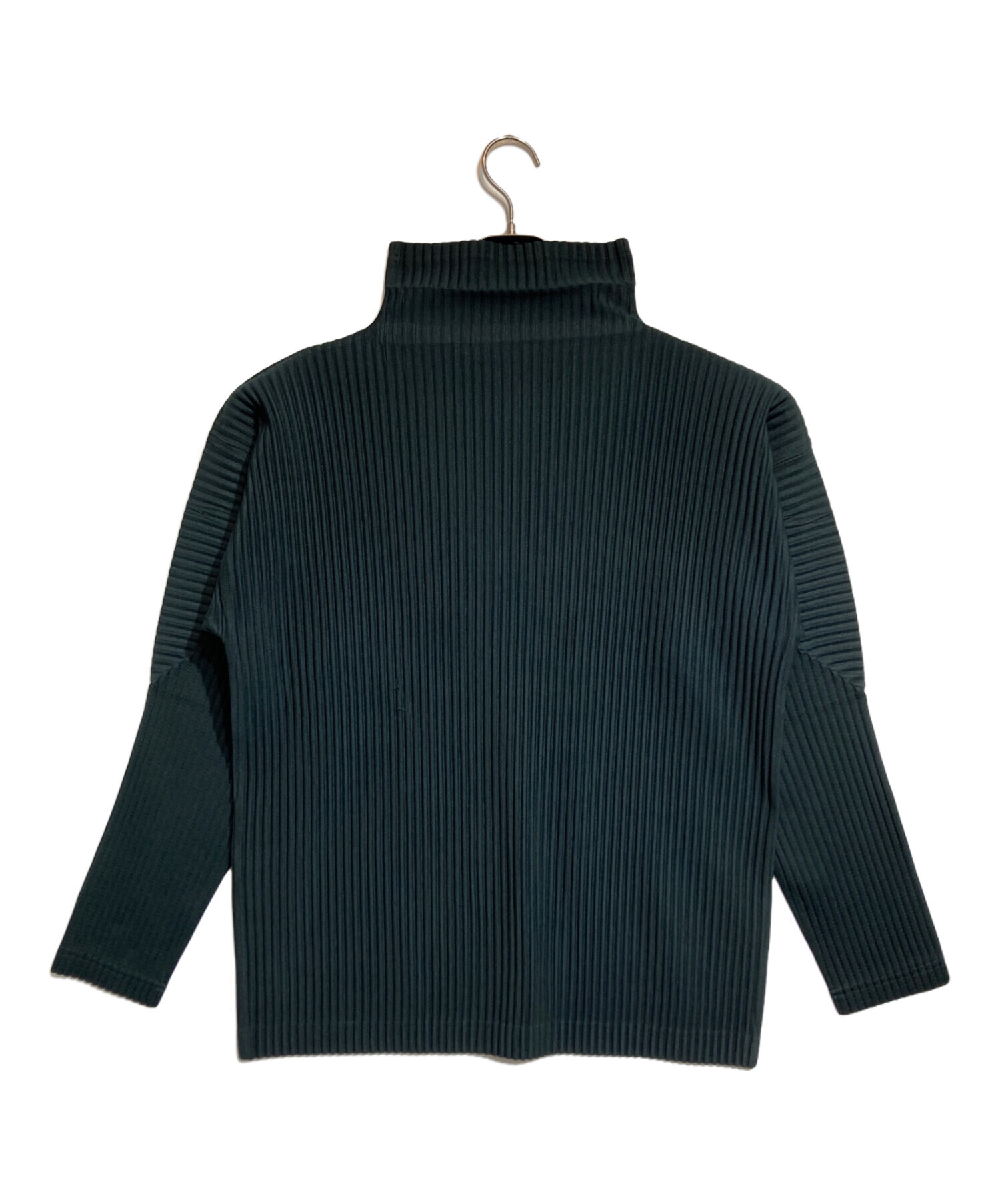 • HOMME PLISSE ISSEY MIYAKE(オム プリッセ イッセイ ミヤケ)HOMME PLISSE ISSEY MIYAKE (オム プリッセ イッセイ ミヤケ) ハイネックプリーツカットソー グリーン サイズ:3の古着・服飾アイテム 背面ツレホツレ有