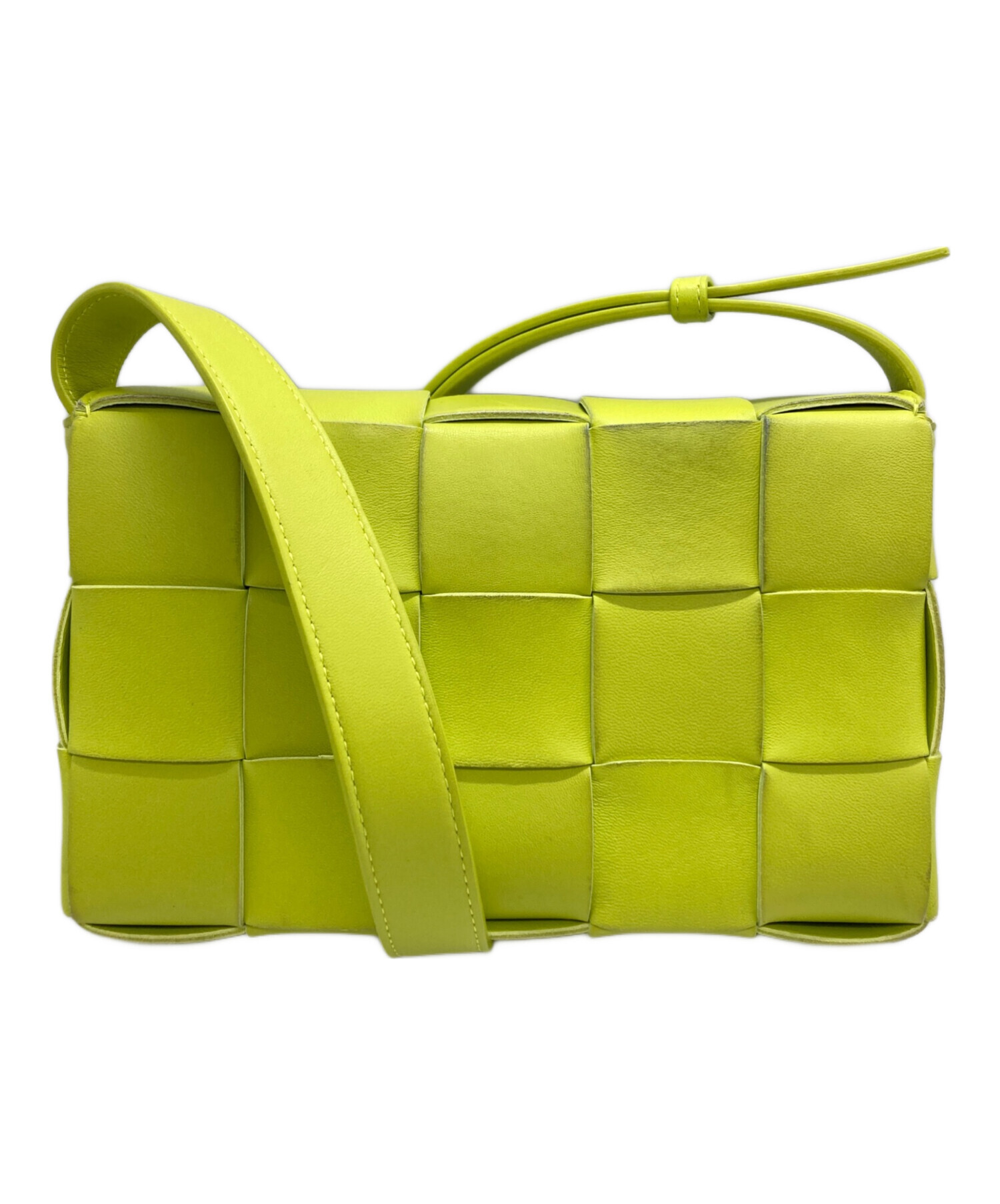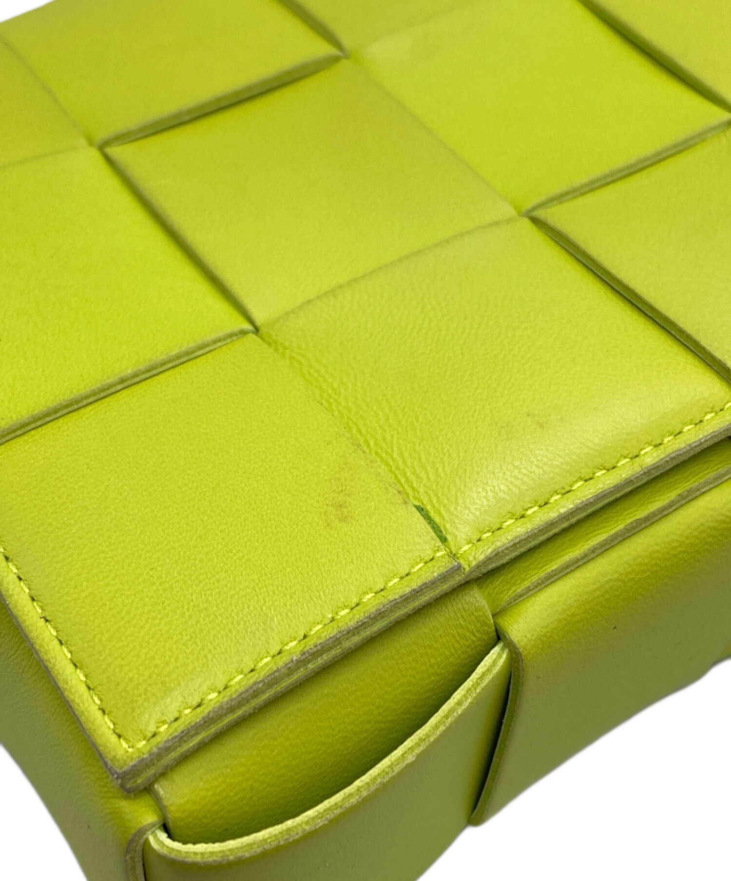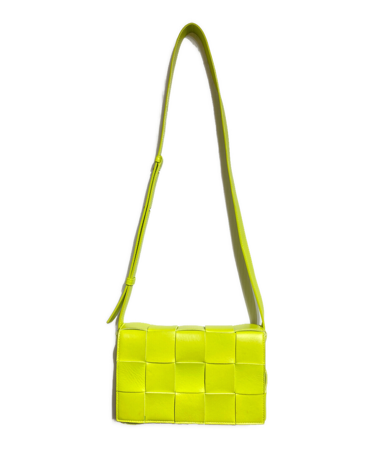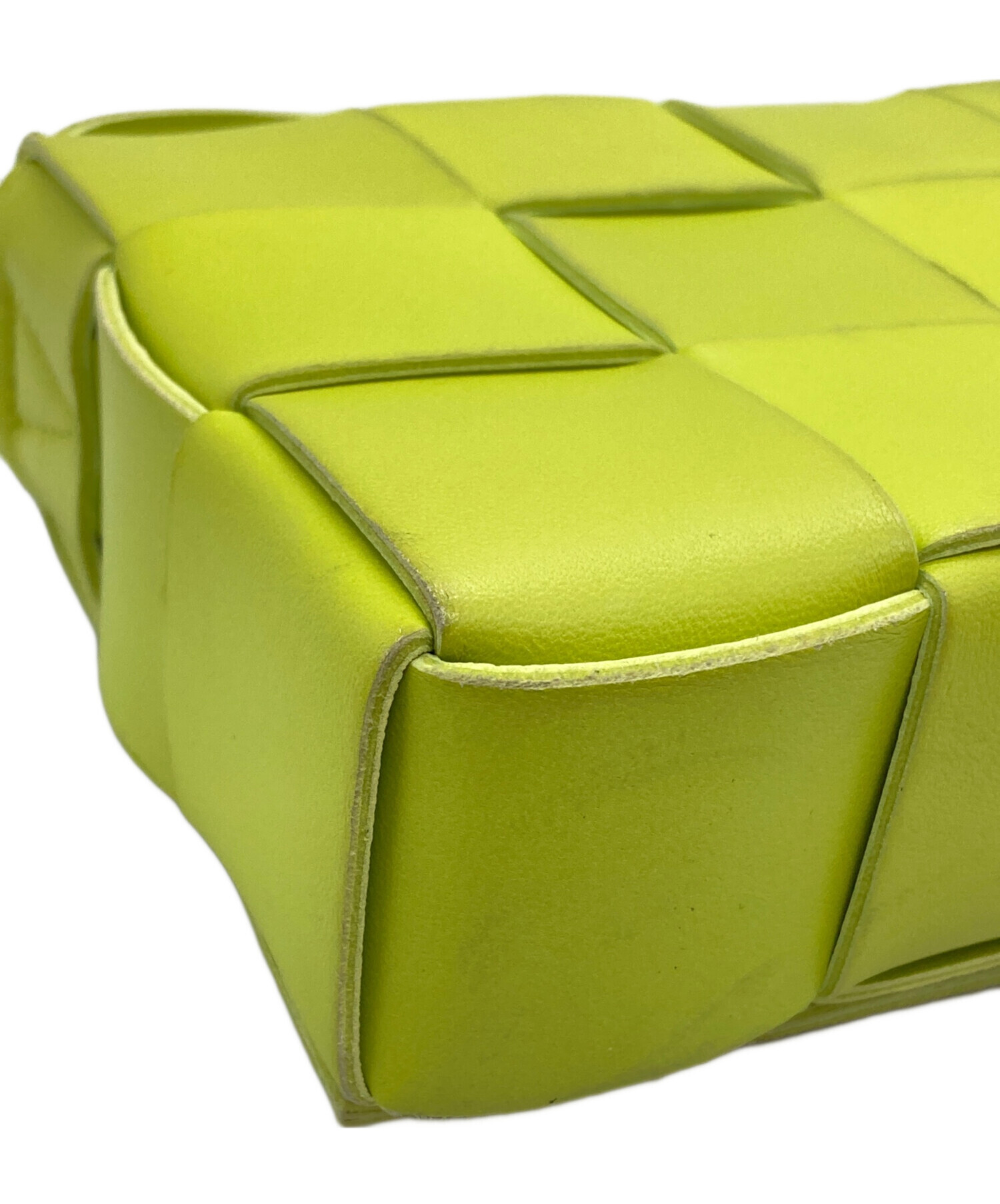 | スタッフコメント | ボッテガ・ヴェネタを象徴するイントレチャートをモダンに昇華した「カセット」。 鮮やかなイエローのラムスキンが、コーディネートに洗練された彩りを添えます。職人技が光るミニマルなデザインは、日常をエレガントに格上げするバッグです。 |