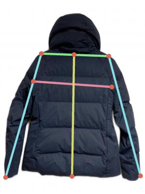 | 素材 | 表地 本体:複合繊維(ポリエステル)100% 内衿:アクリル70%、ウール30% 裏地:ポリエステル100% 中綿 本体:ダウン90%、フェザー10% フード口・脇身頃・袖下:ポリエステル100% |