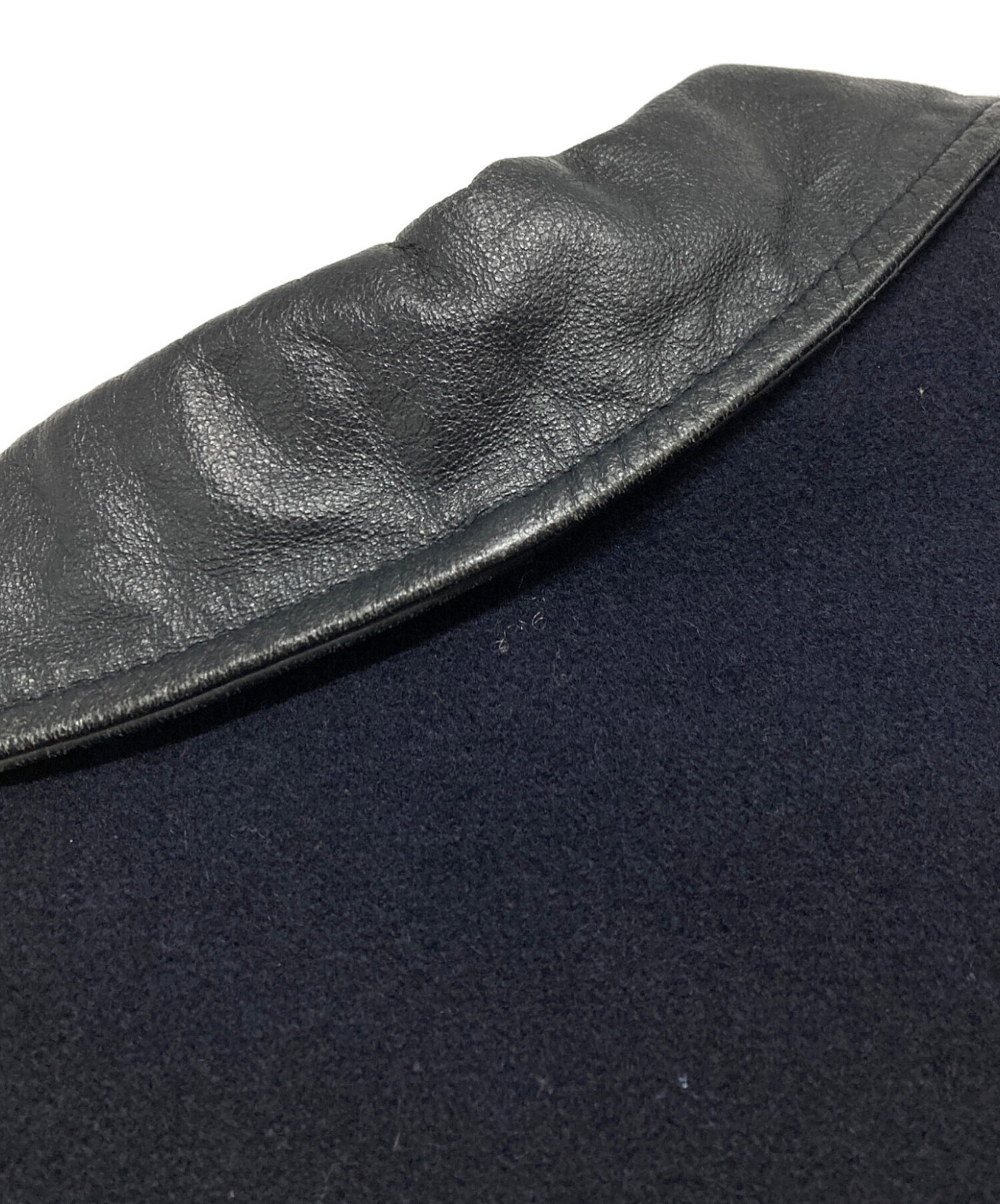 | スタッフコメント | 80〜90年代のイッセイミヤケとワコールの共同プロジェクトが生んだ、希少なアーカイブです。ネイビーのウールボディに黒のレザー袖を配したシックな配色が、当時のスポーツMIX特有のレトロさと現代的なモード感を両立させています。 |
