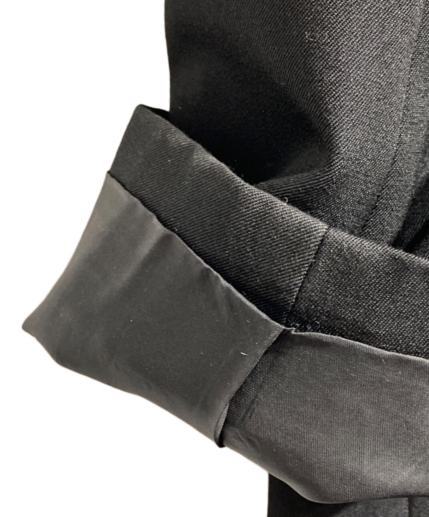 | スタッフコメント | コムデギャルソンオムプリュスのタキシードコート。重厚なウールギャバジンと美しいシルエットが、モードな暗闇の美学を体現します。 |