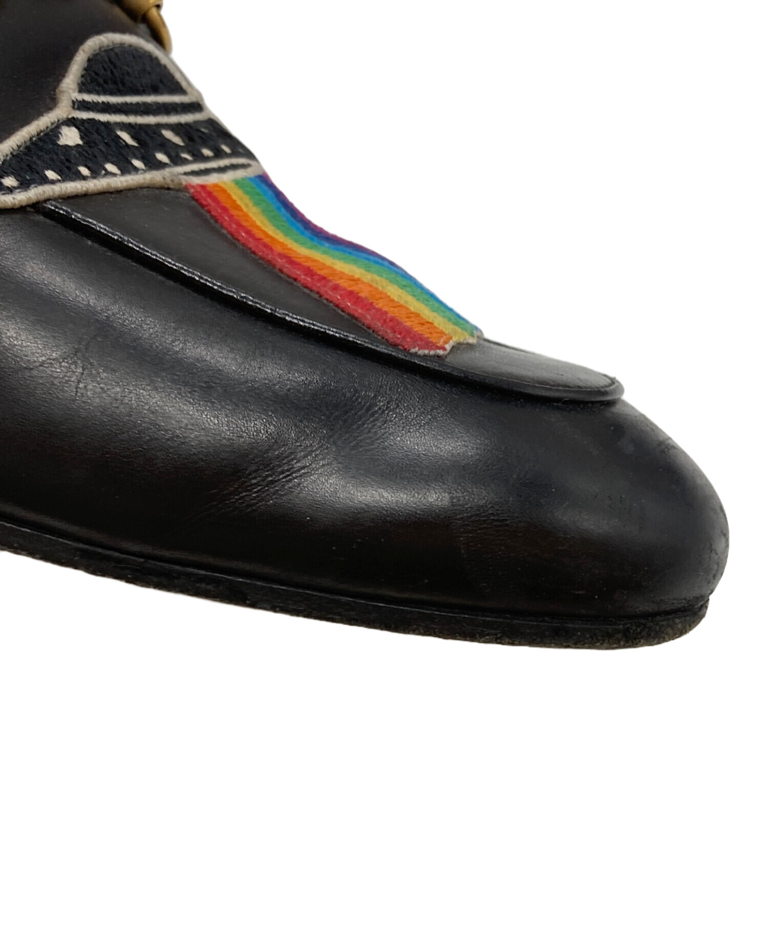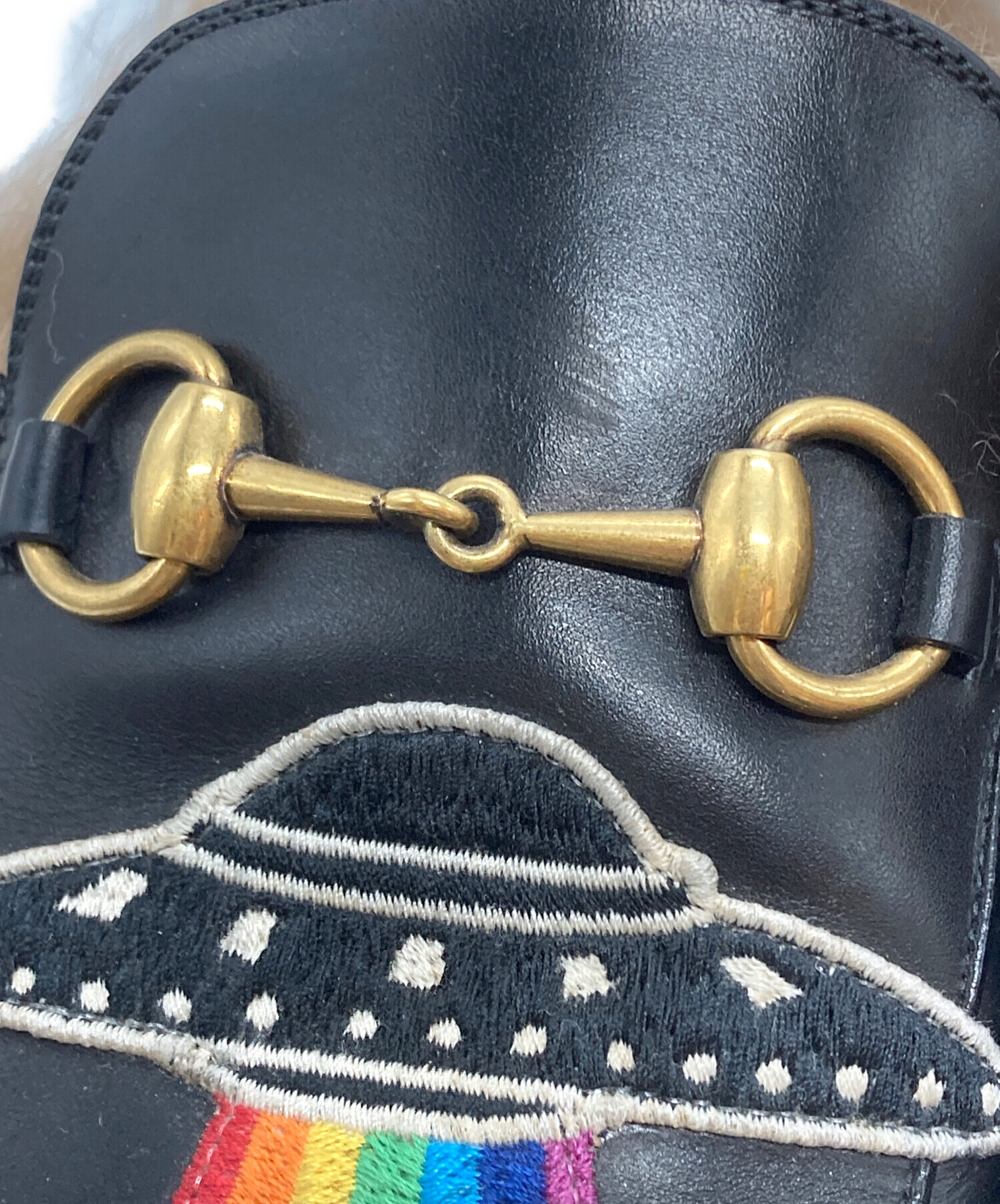 | スタッフコメント | GUCCIを象徴するホースビットに、遊び心溢れるUFOの刺繍を施したプリンスタウン。贅沢なファー使いが足元に華やかさを添えます。 |