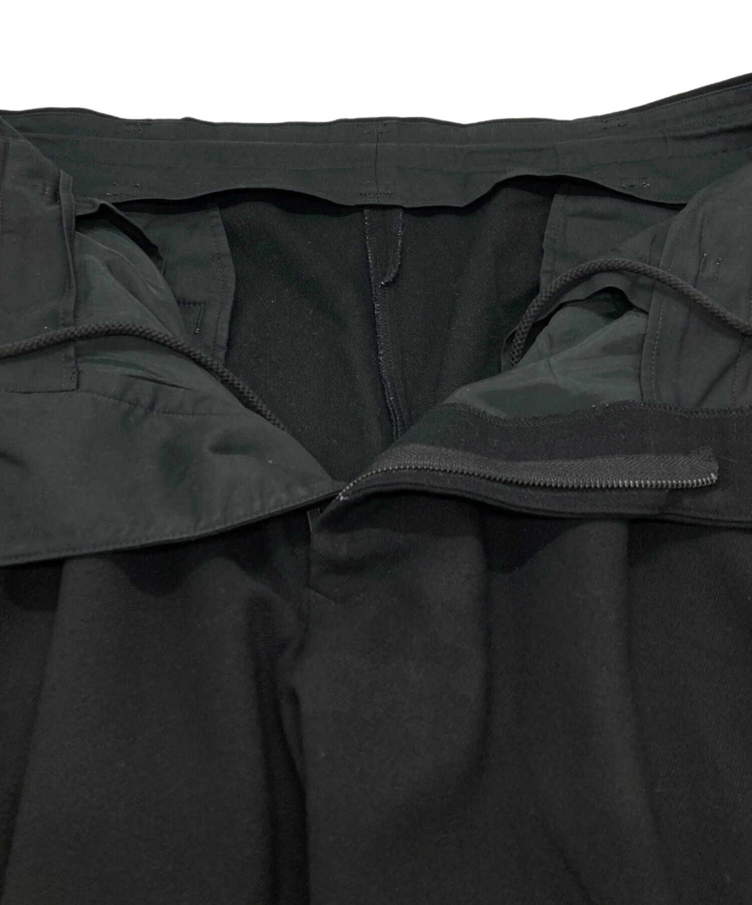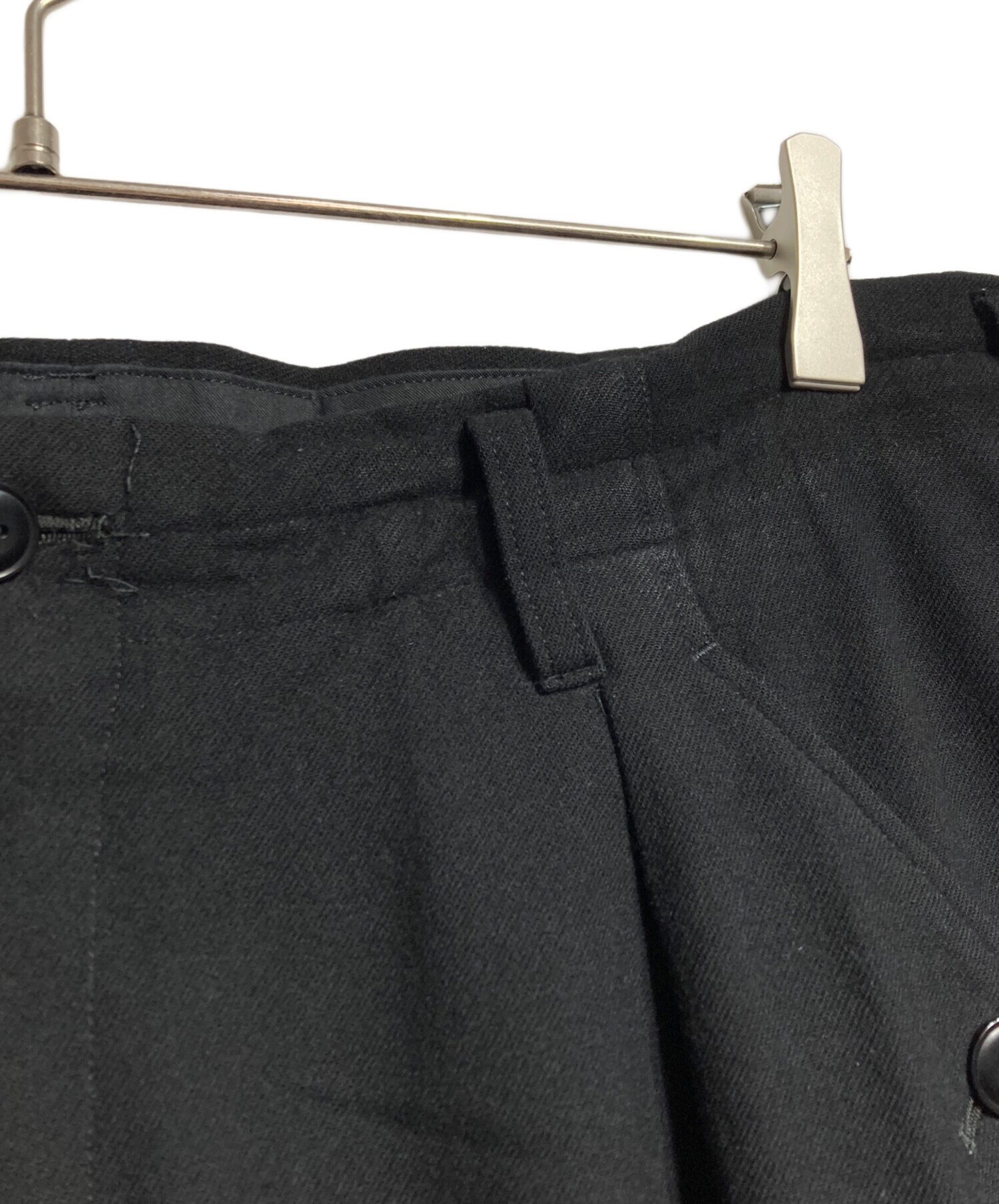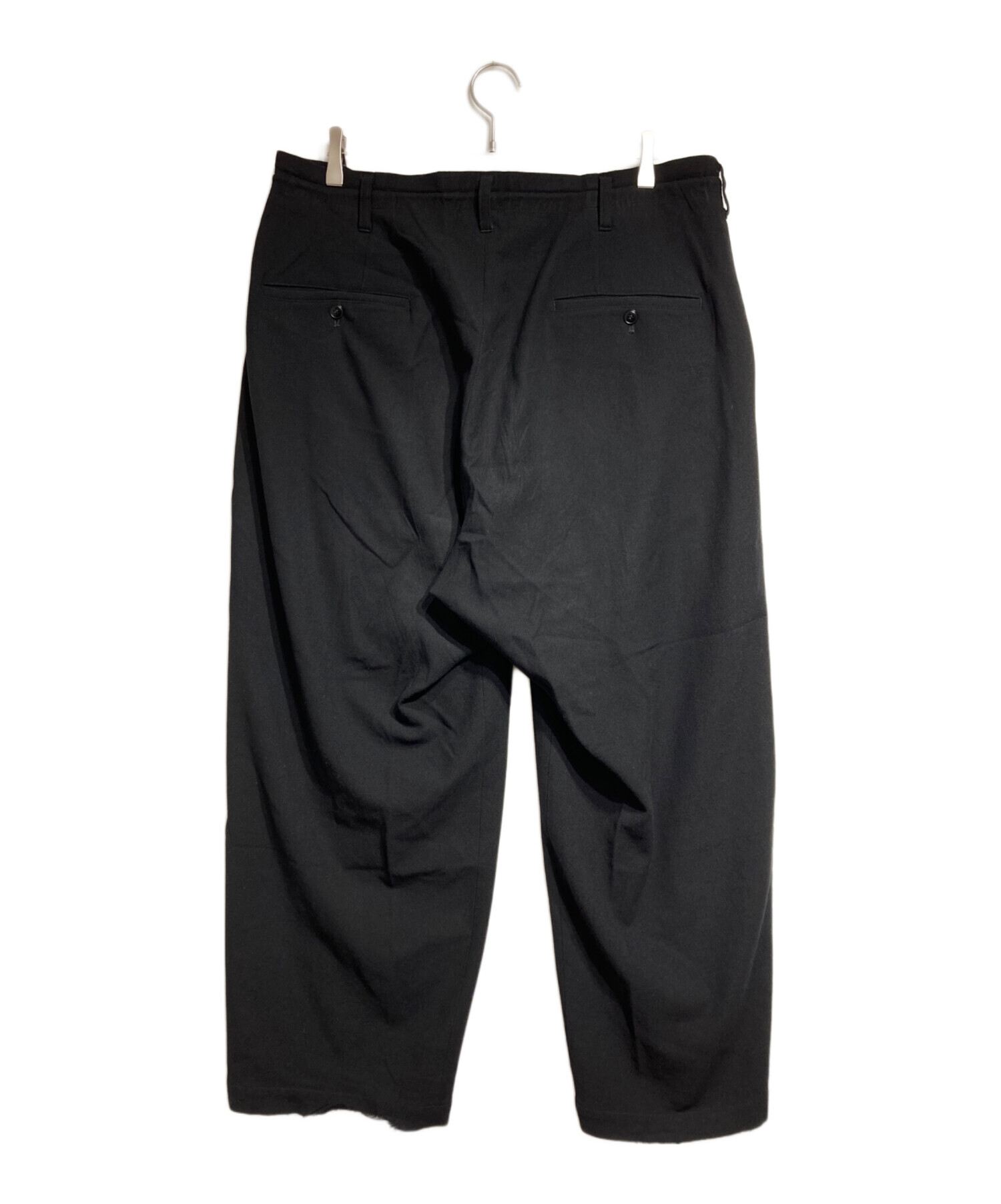 | スタッフコメント | ヨウジヤマモトらしい分量感のあるシルエットが魅力のウールフランネルパンツ。 温かみのある生地感とブラックの深い色合いがモードな雰囲気を醸成します。タックが生み出す美しいドレープが、洗練された着こなしを叶える一着です。 |
