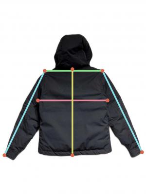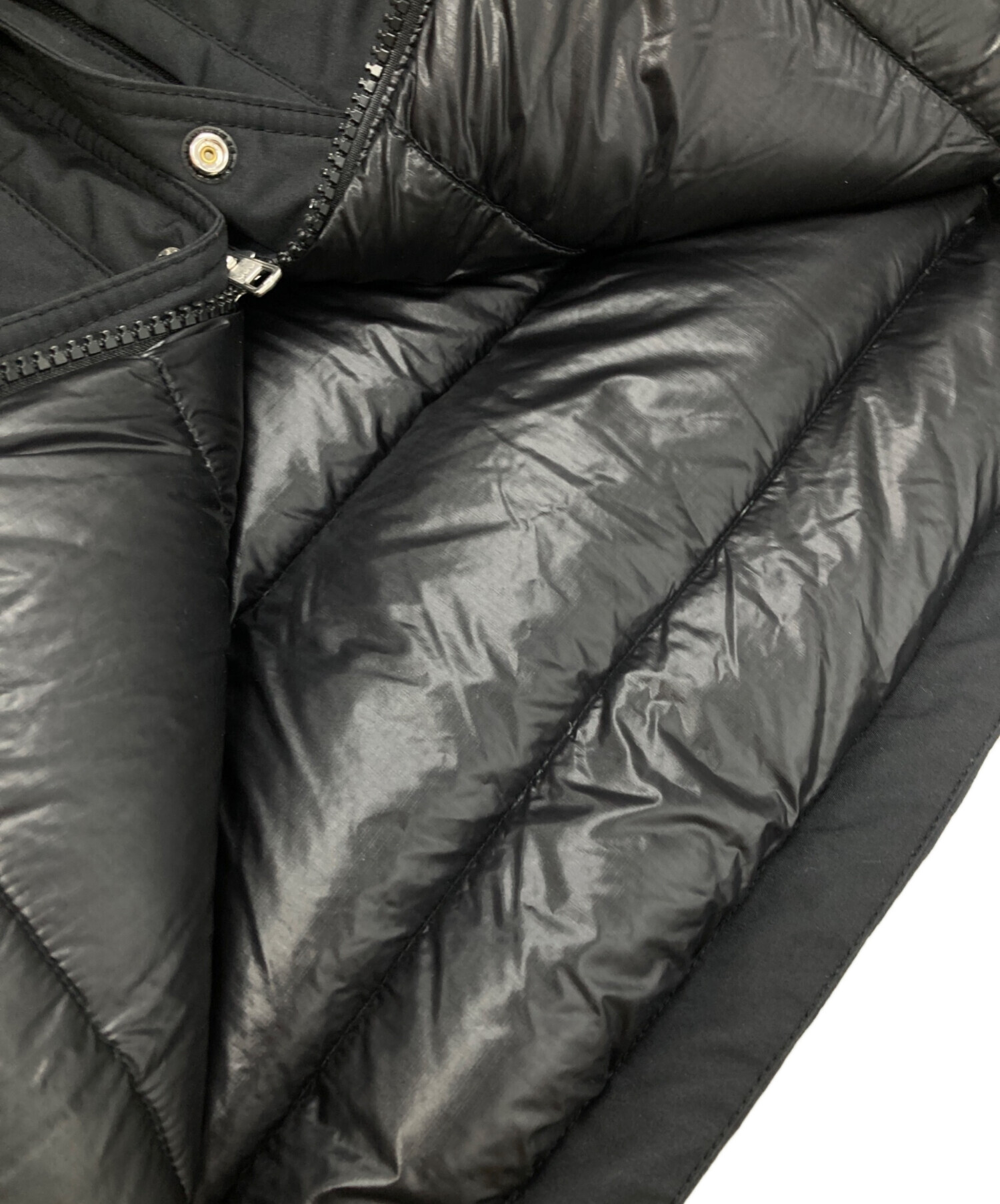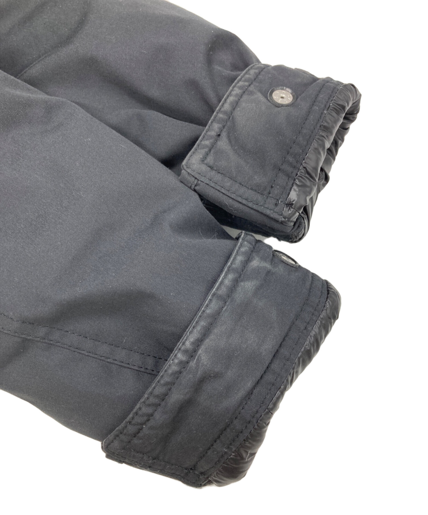 | 素材 | 表地:ポリエステル65%、コットン35% 裏地:ナイロン100% ポケット袋布、チンガード裏:ポリエステル65%、レーヨン35% 中綿:ダウン72%、レーヨン20%、その他羽毛8% |