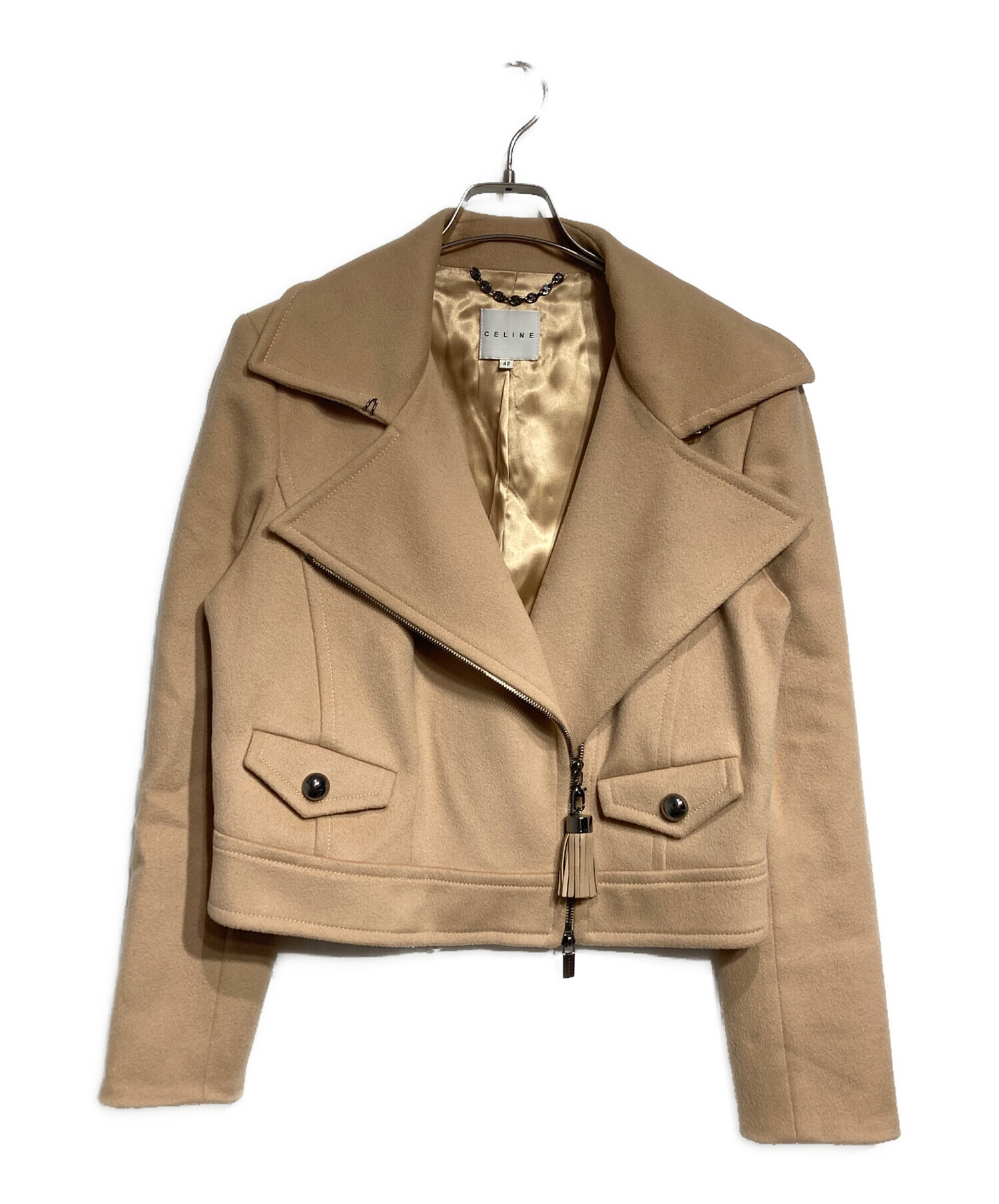 • CELINE(セリーヌ)CELINE (セリーヌ) メルトンライダースジャケット/Melton Riders Jacket ベージュ サイズ:42の古着・服飾アイテム キズ有り