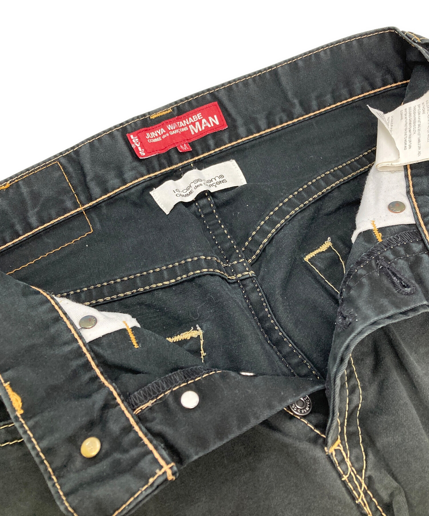 • COMME des GARCONS JUNYA WATANABE MAN(コム デ ギャルソン ジュンヤ ワタナベ マン)COMME des GARCONS JUNYA WATANABE MAN LEVI'S 10 corso como トリプルコラボステッチパンツ/Triple Collaboration Stitch Pants ブラック サイズ:Mの古着・服飾アイテム 折り目、アタリ有