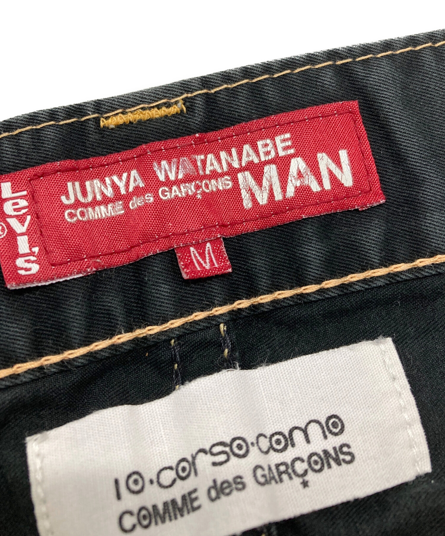 • COMME des GARCONS JUNYA WATANABE MAN(コム デ ギャルソン ジュンヤ ワタナベ マン)COMME des GARCONS JUNYA WATANABE MAN LEVI'S 10 corso como トリプルコラボステッチパンツ/Triple Collaboration Stitch Pants ブラック サイズ:Mの古着・服飾アイテム タグスレ有り