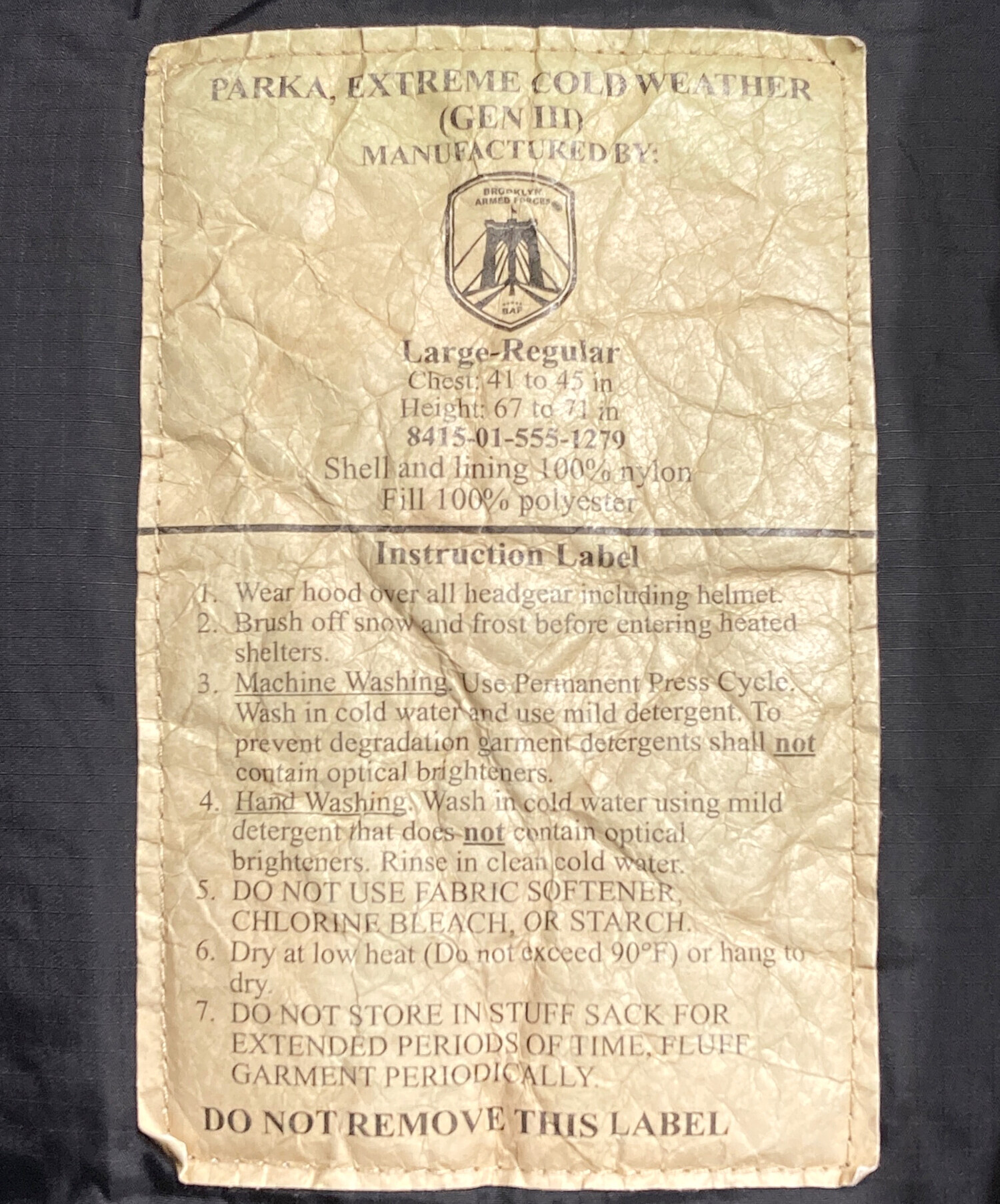 | スタッフコメント | 米軍実物の中綿ジャケットであることを示す「NSN(ナショナルストックナンバー)」が付与された、まさにミリタリー・レイヤリングシステムの最終形態です。 |