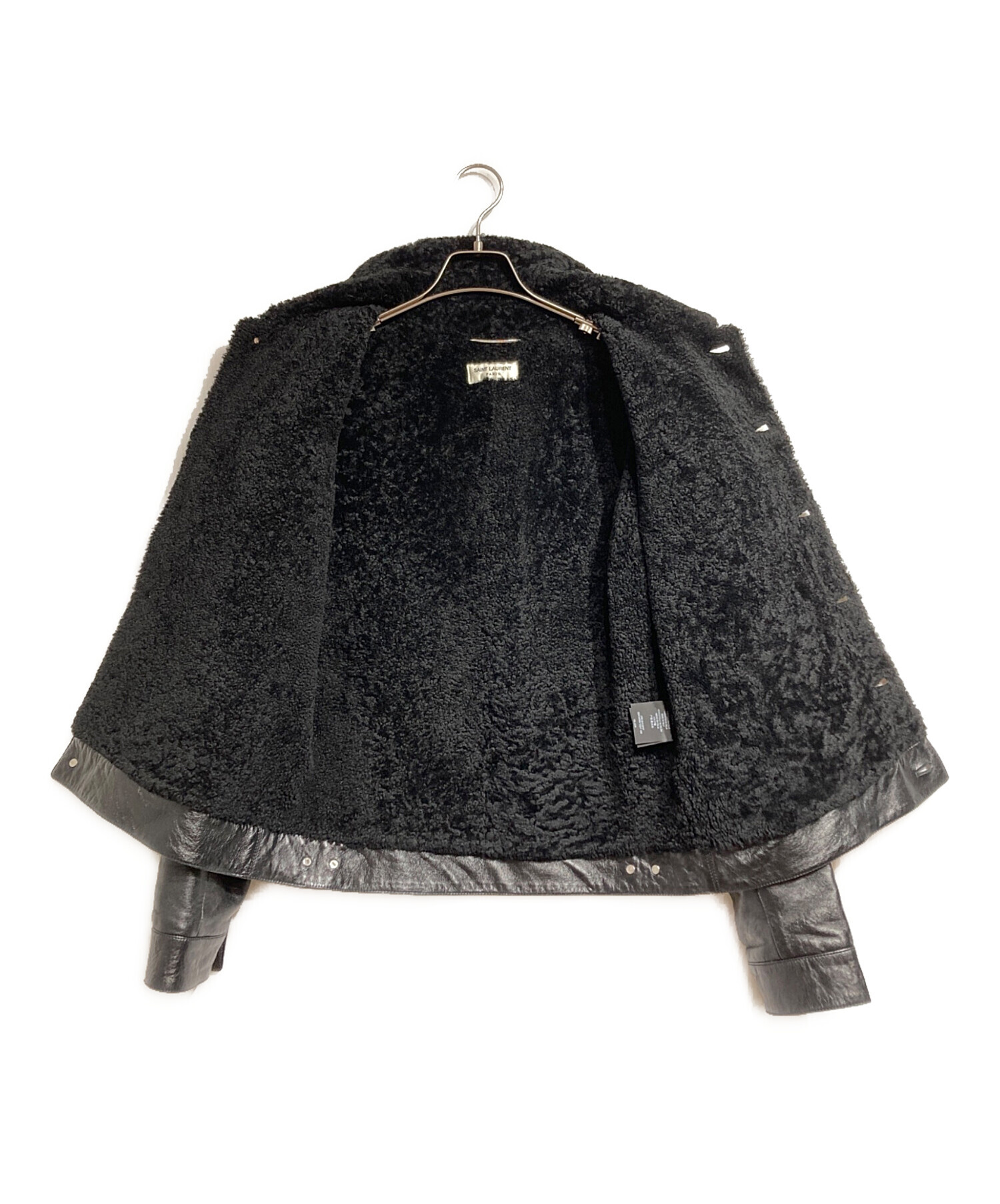 | スタッフコメント | Saint Laurent Paris(サンローラン・パリ)の「ムートンレザートラッカージャケット」。 エディ・スリマンが築き上げた、あのアスファルトの匂いがするような「ロック・ラグジュアリー」の血統。野性味溢れるムートンの質感と、トラッカージャケット(Gジャン型)というワークウェアの記号を、極限までタイトに、そして退廃的に研ぎ澄ませた至高のピースです。 |