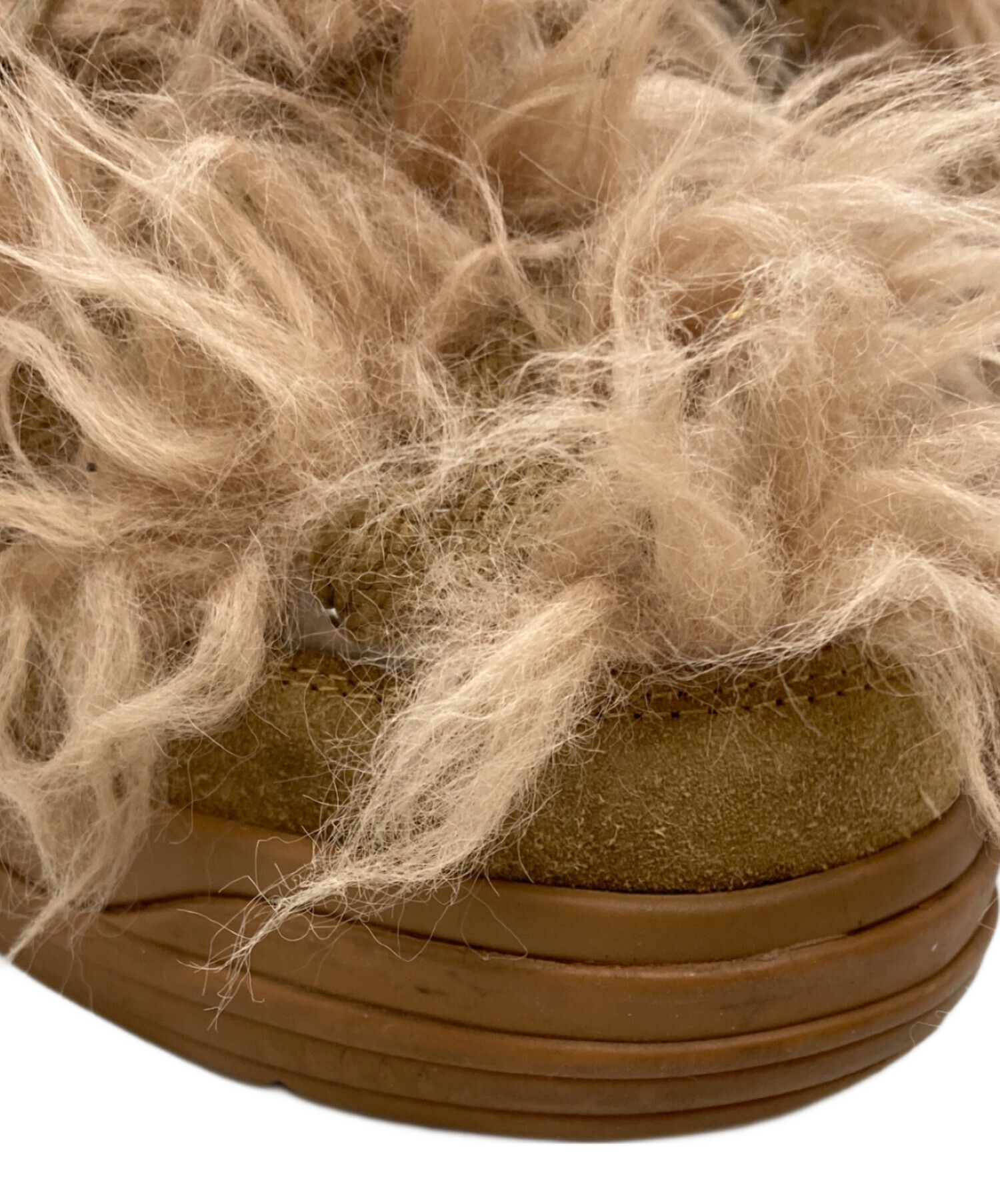 • MONCLER(モンクレール)MONCLER (モンクレール) フェイクファーレースアップブーツ/Faux fur lace-up boots ブラウン サイズ:38の古着・服飾アイテム ソール一部に劣化