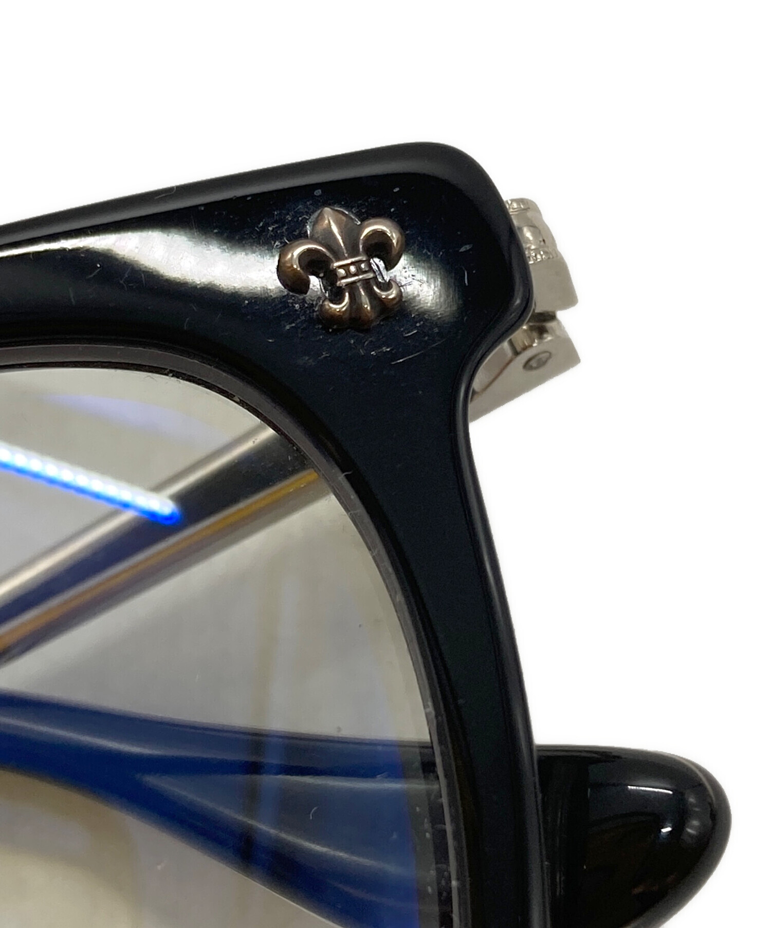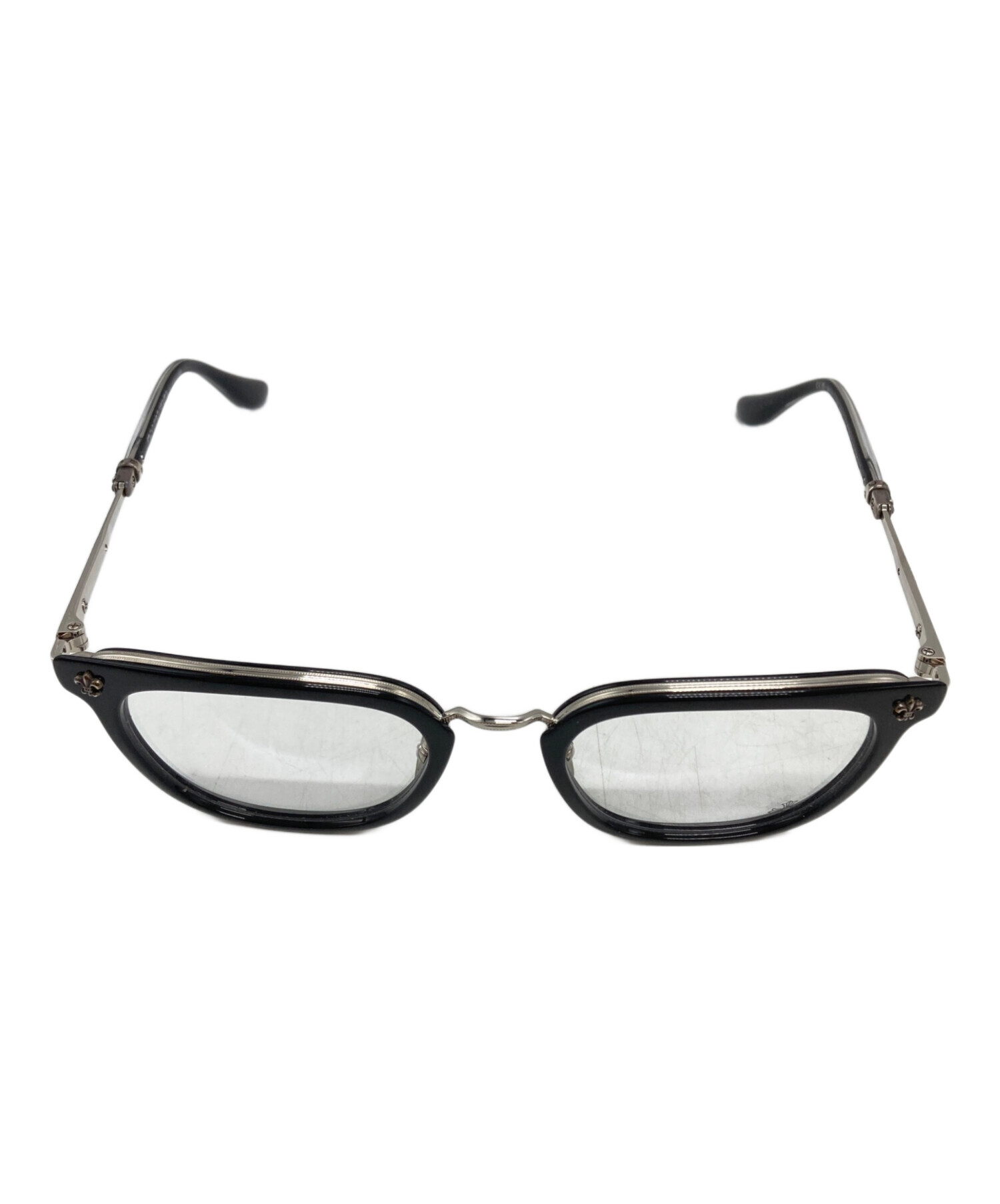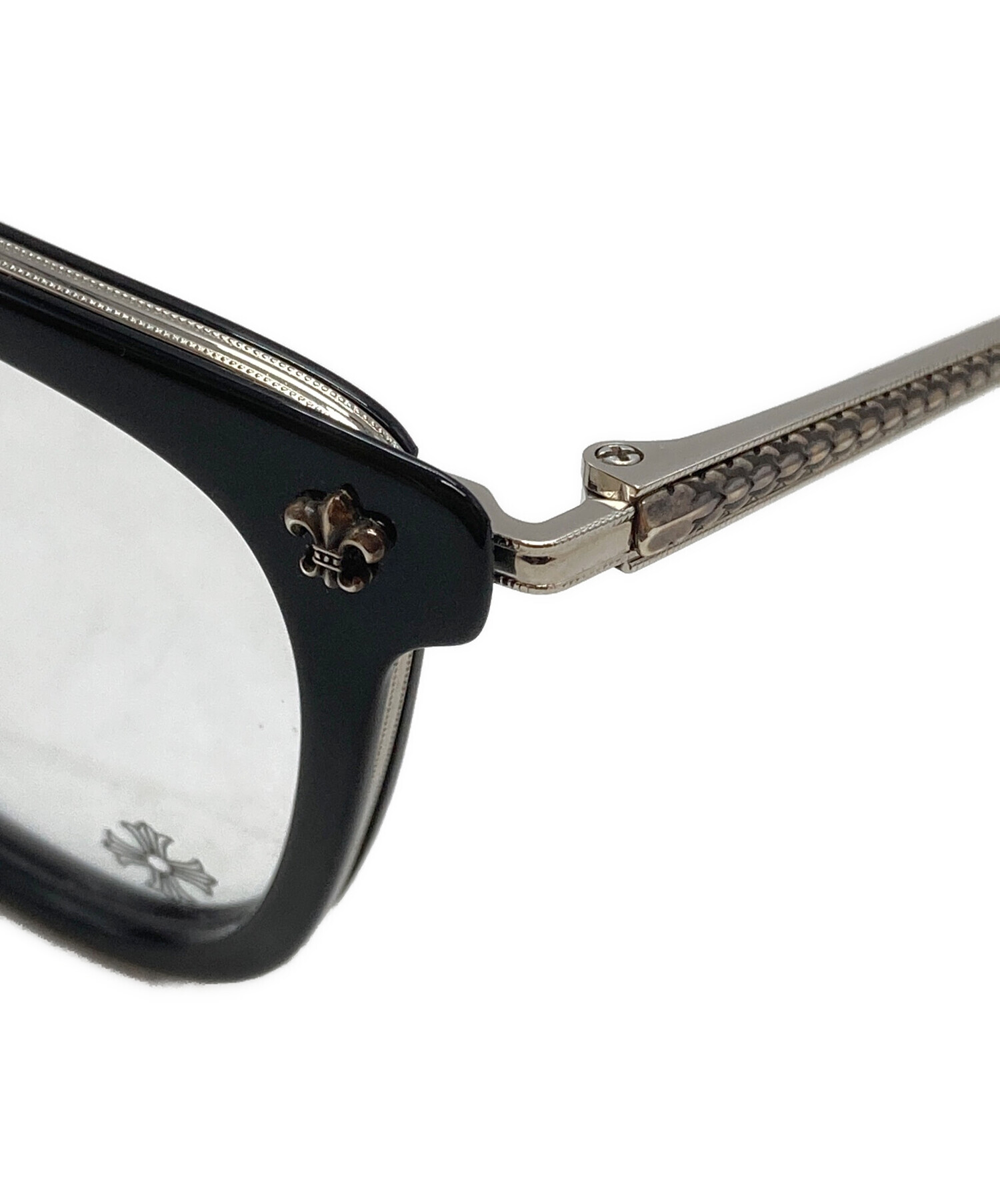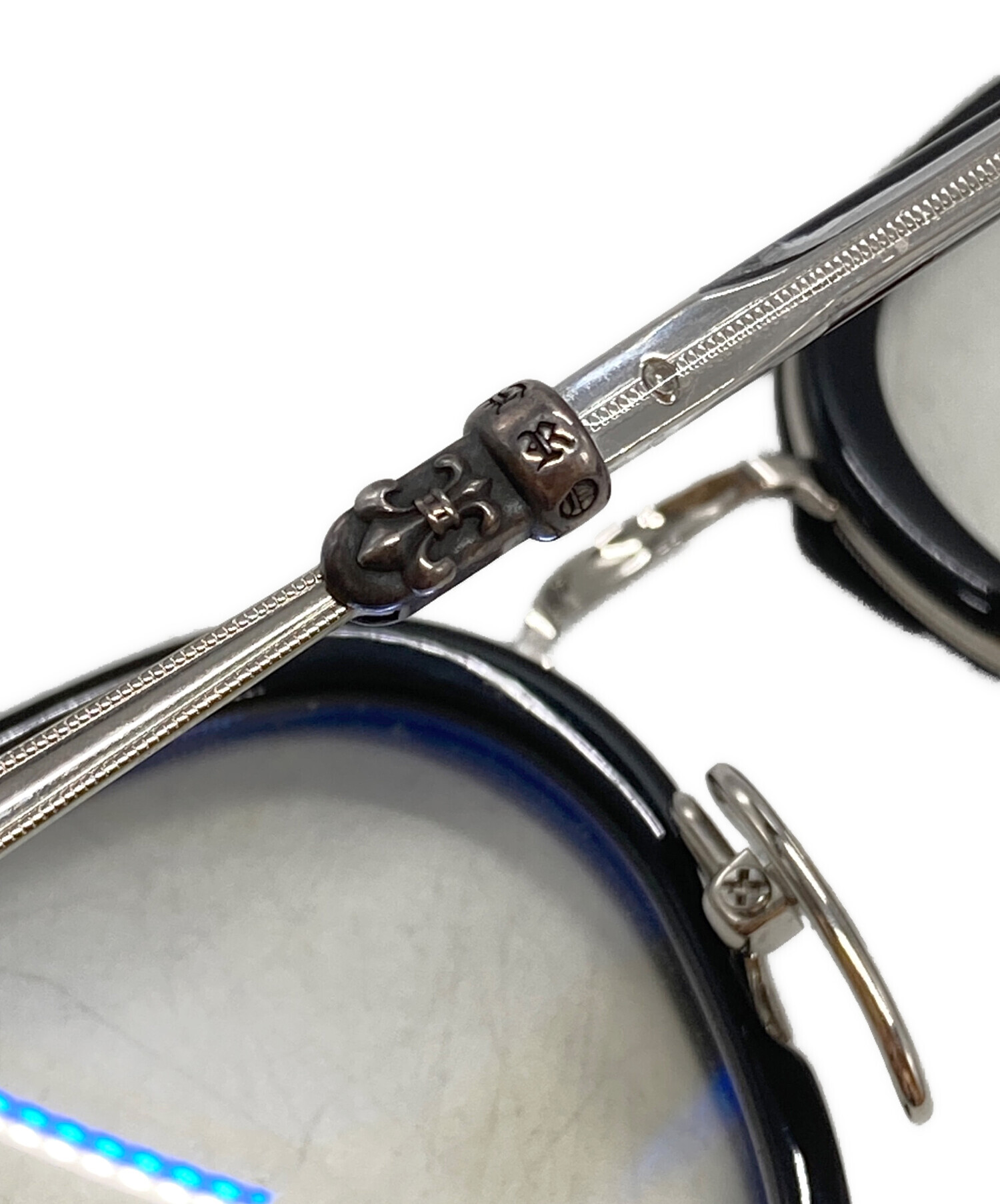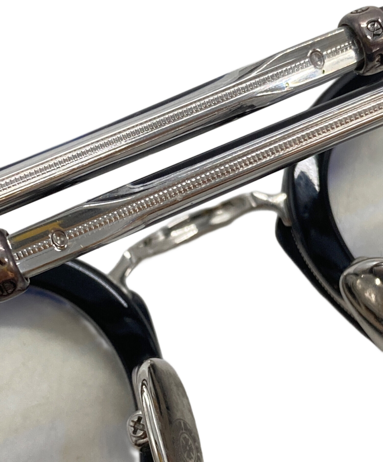 | スタッフコメント | クロムハーツらしい重厚なシルバー装飾を施したアイウェア。無骨なフレームに宿る精緻な彫金が、顔まわりに圧倒的な存在感と気品を漂わせる一品です。 |