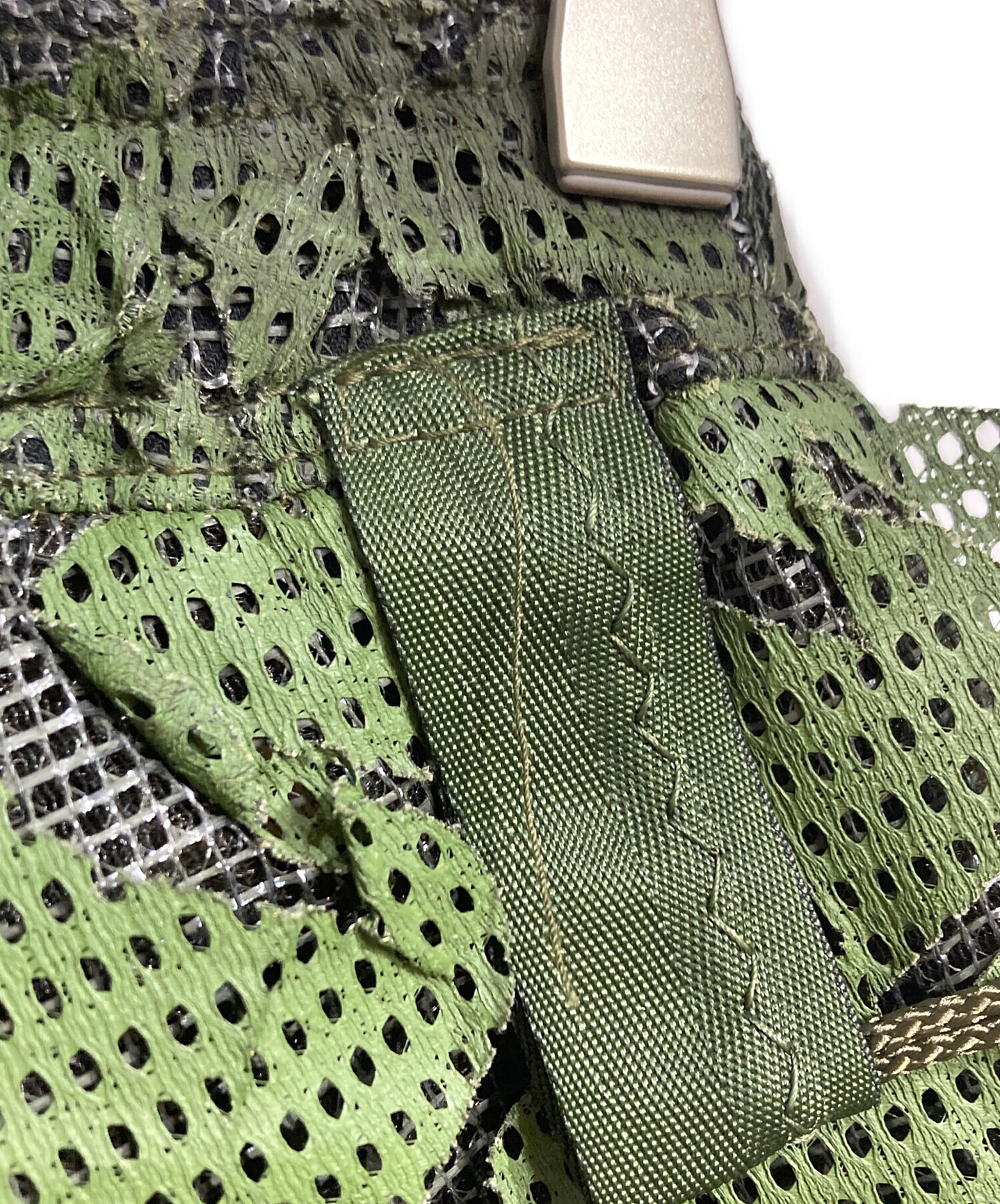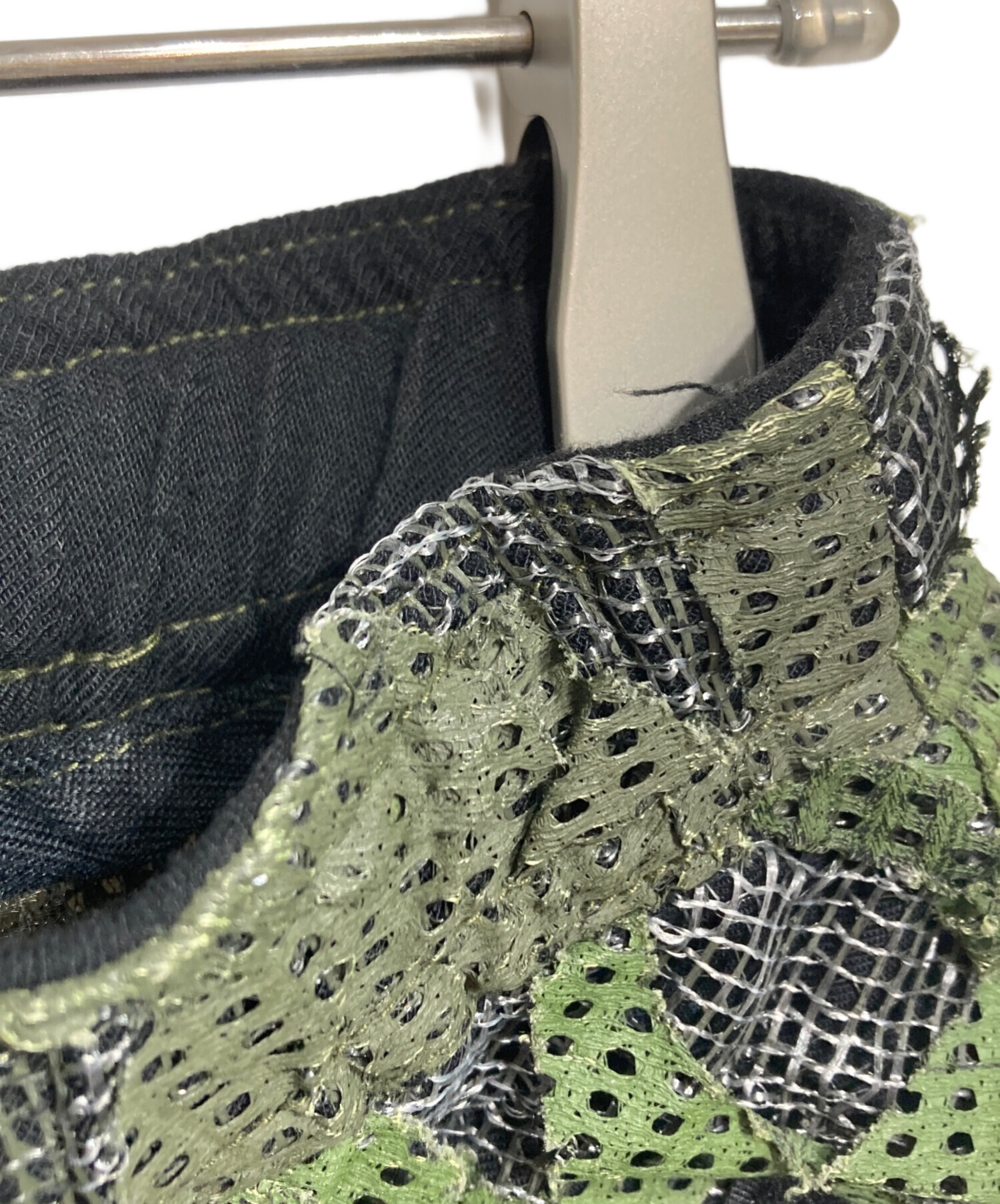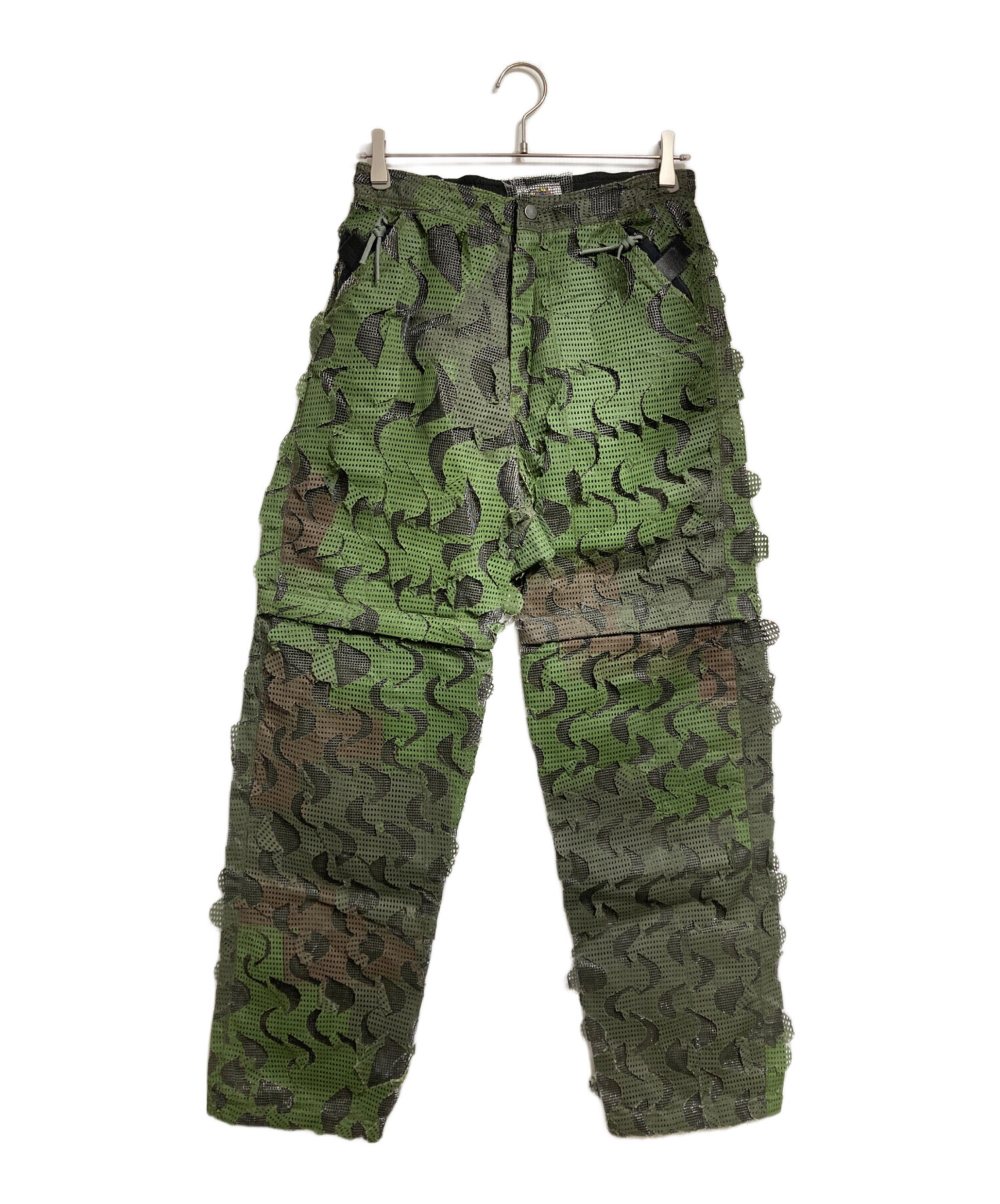 スタッフコメント 軍用ネットワークをアップサイクルした、独特の質感が魅力のオーバーパンツ。膝のジッパーでショーツに切り替え可能な機能性を備えています。砂漠迷彩の風合いと、現代的なシルエットが融合した独創的な一着です。
