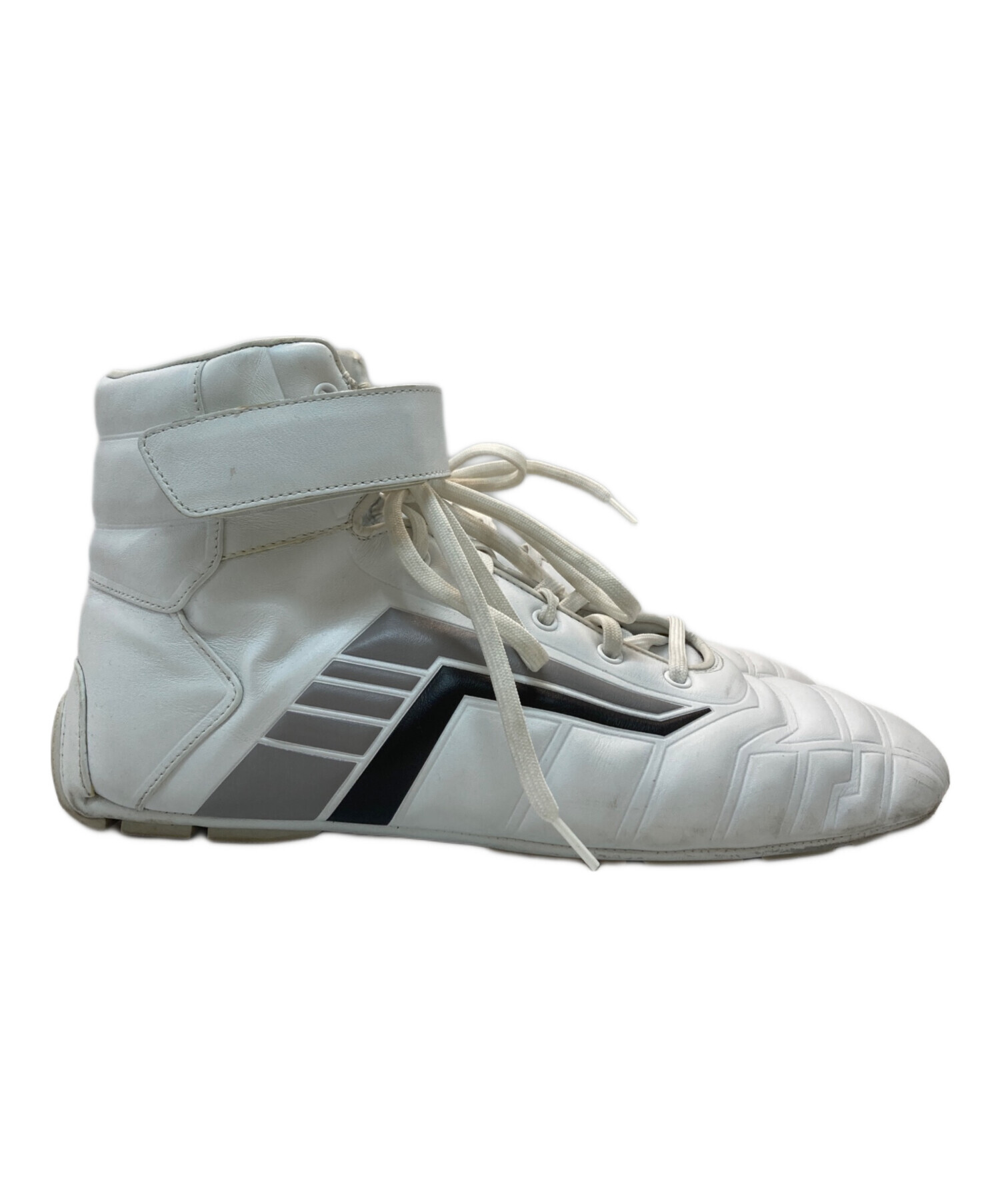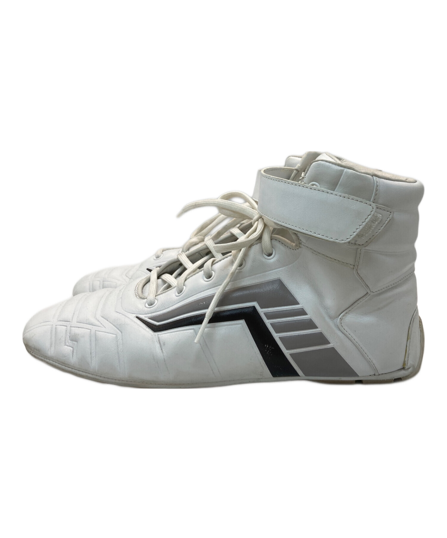 | スタッフコメント | 洗練されたハイトップのフォルムに、アイコニックなトライアングルロゴが映える一足。ミニマルなアッパーデザインと重厚感のあるソールが、足元にメゾンらしいモダンな表情を添えます。 |