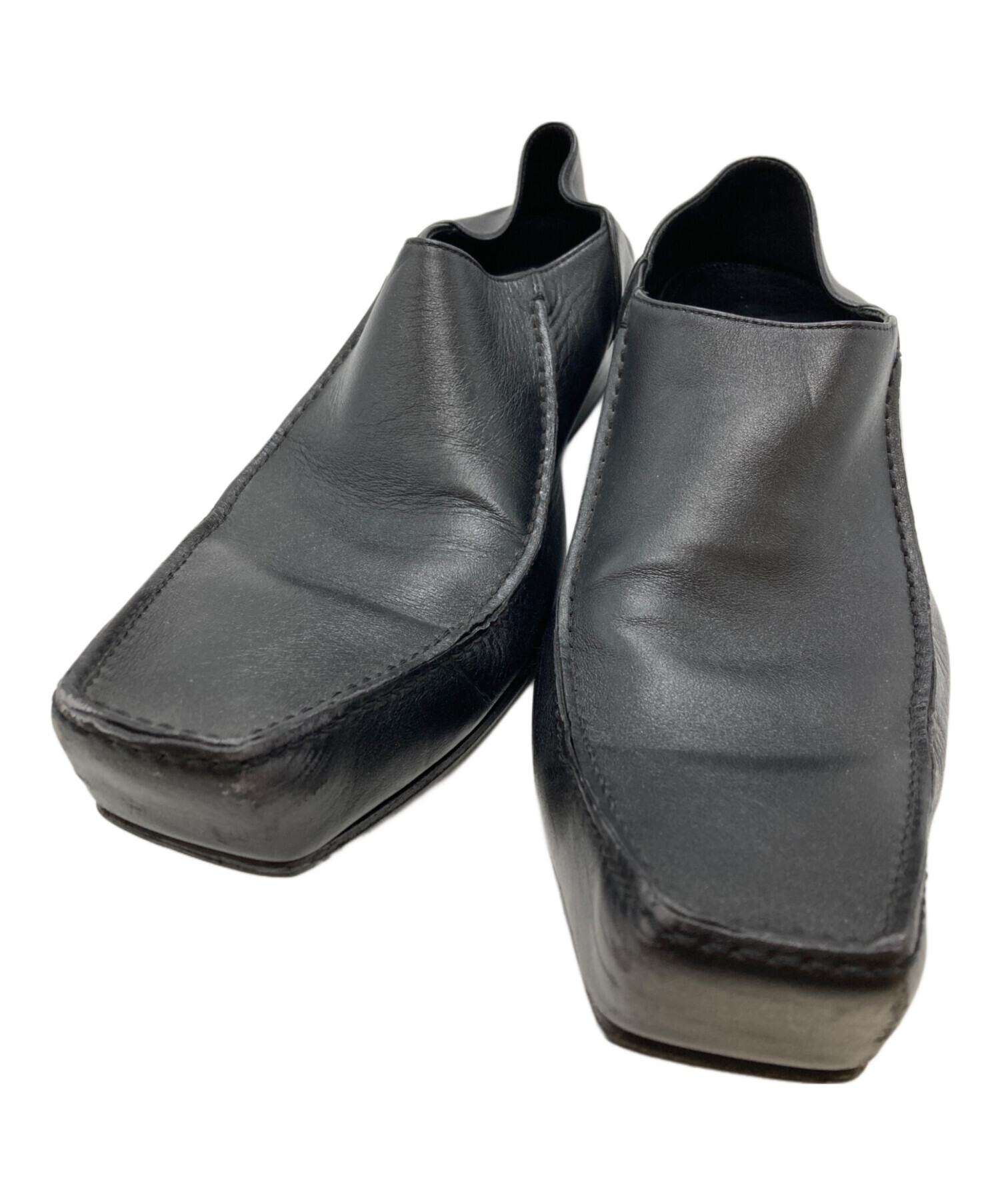 | スタッフコメント | スクエアトゥの鋭利な造形と、踵を倒したミュール仕様が独創的な一足。クラシックな装いを解体し、現代的な均衡で再構築したシルエットが、足元に圧倒的な違和感と美学を共存させる、知的な破壊が宿る意匠です。 |