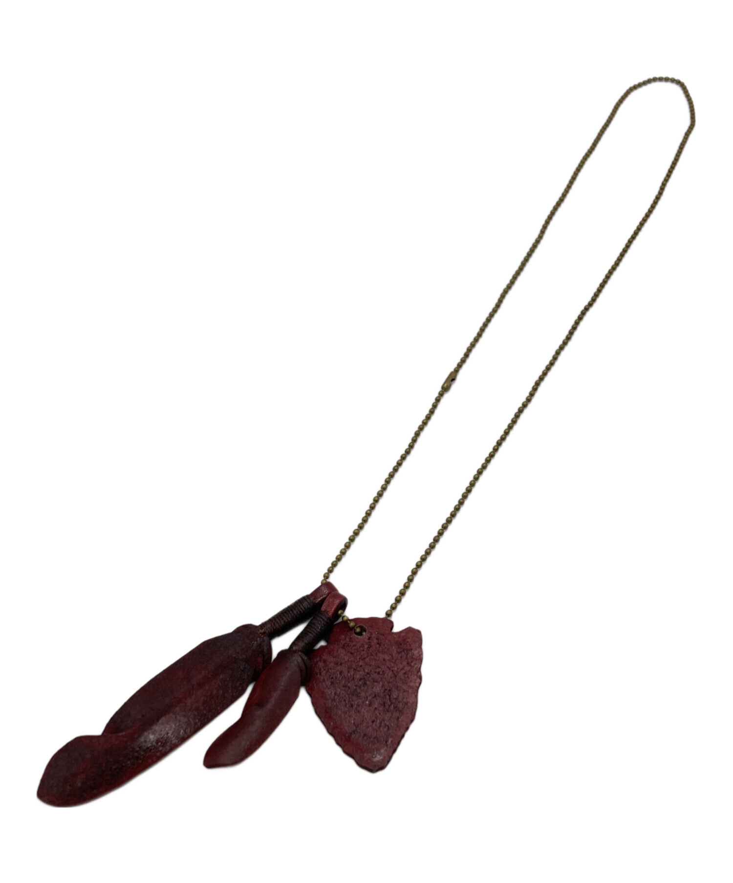 | スタッフコメント | カリフォルニアの空気感を纏い、厳選されたレザーを丁寧にカッティングしたフェザーネックレス。使い込むほどに風合いを増す素材感と、手仕事による繊細な彫り込みが胸元に洗練された個性を宿します。 |