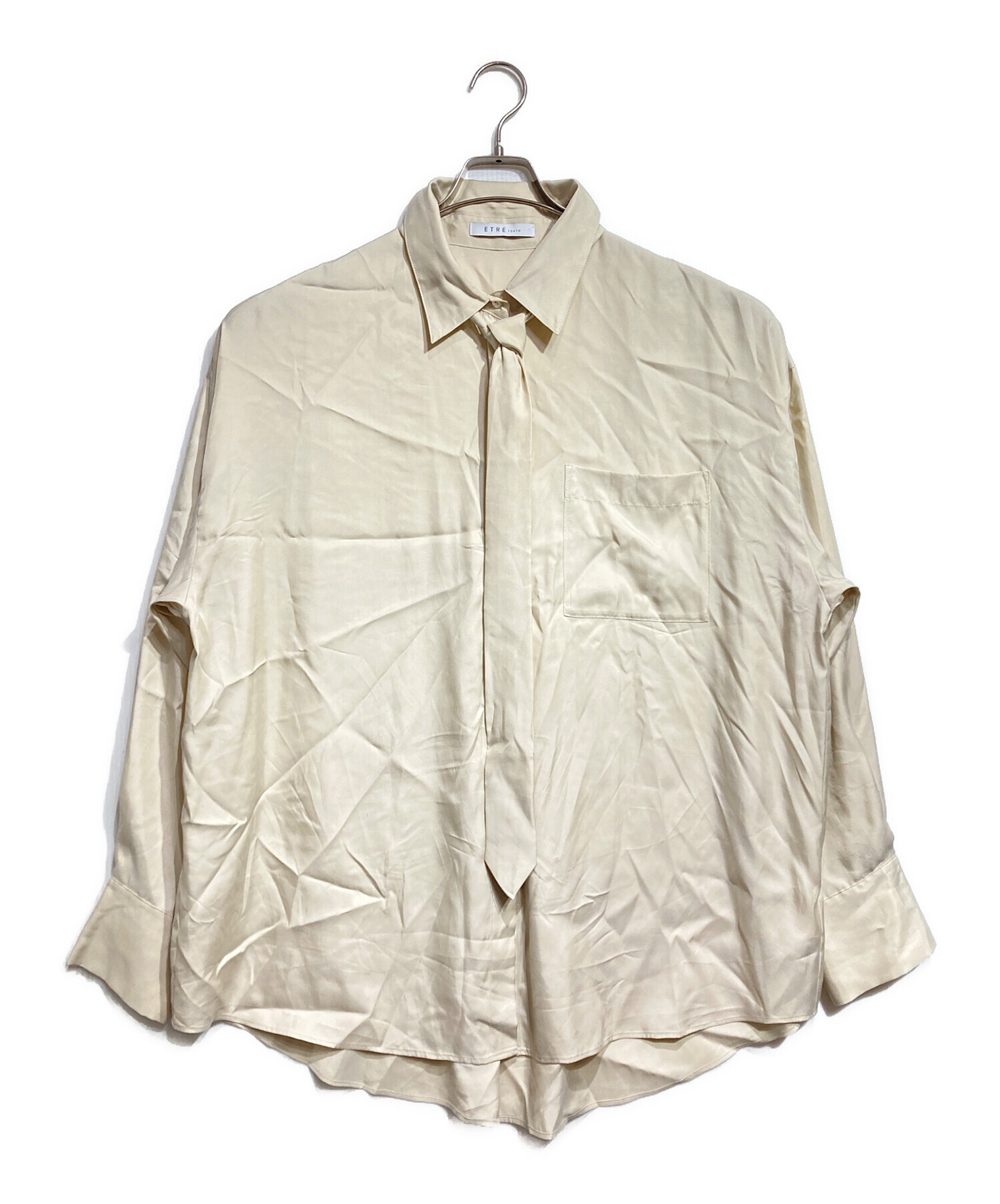 • ETRE TOKYO(エトレトウキョウ)ETRE TOKYO (エトレトウキョウ) Cupra Necktie Oversized Shirt/キュプラネクタイオーバーシャツ ベージュ サイズ:Fの古着・服飾アイテム 袖口多少のツレ有