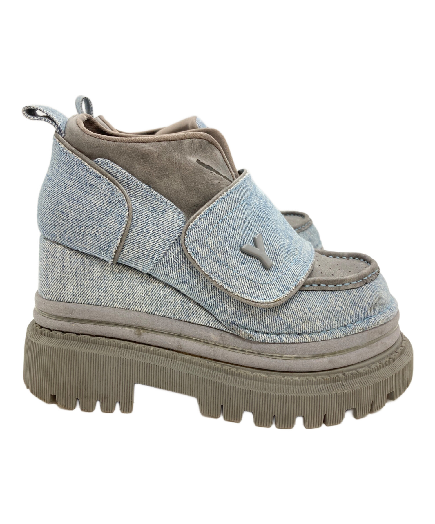 | スタッフコメント | 緻密なパッチワークが描く、多層的なグレーの陰影。YELLOならではの圧倒的な美脚シルエットと重厚なプラットフォームが、装いに現代的な攻撃性と揺るぎないモードの風格を宿らせる、至高のショートブーツです。 |