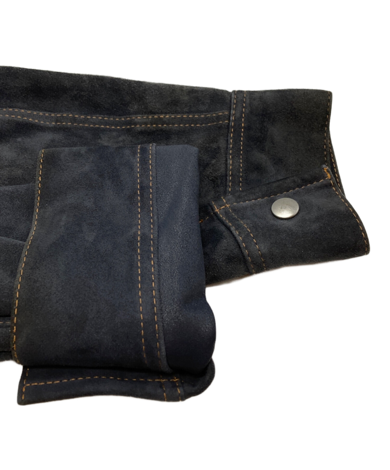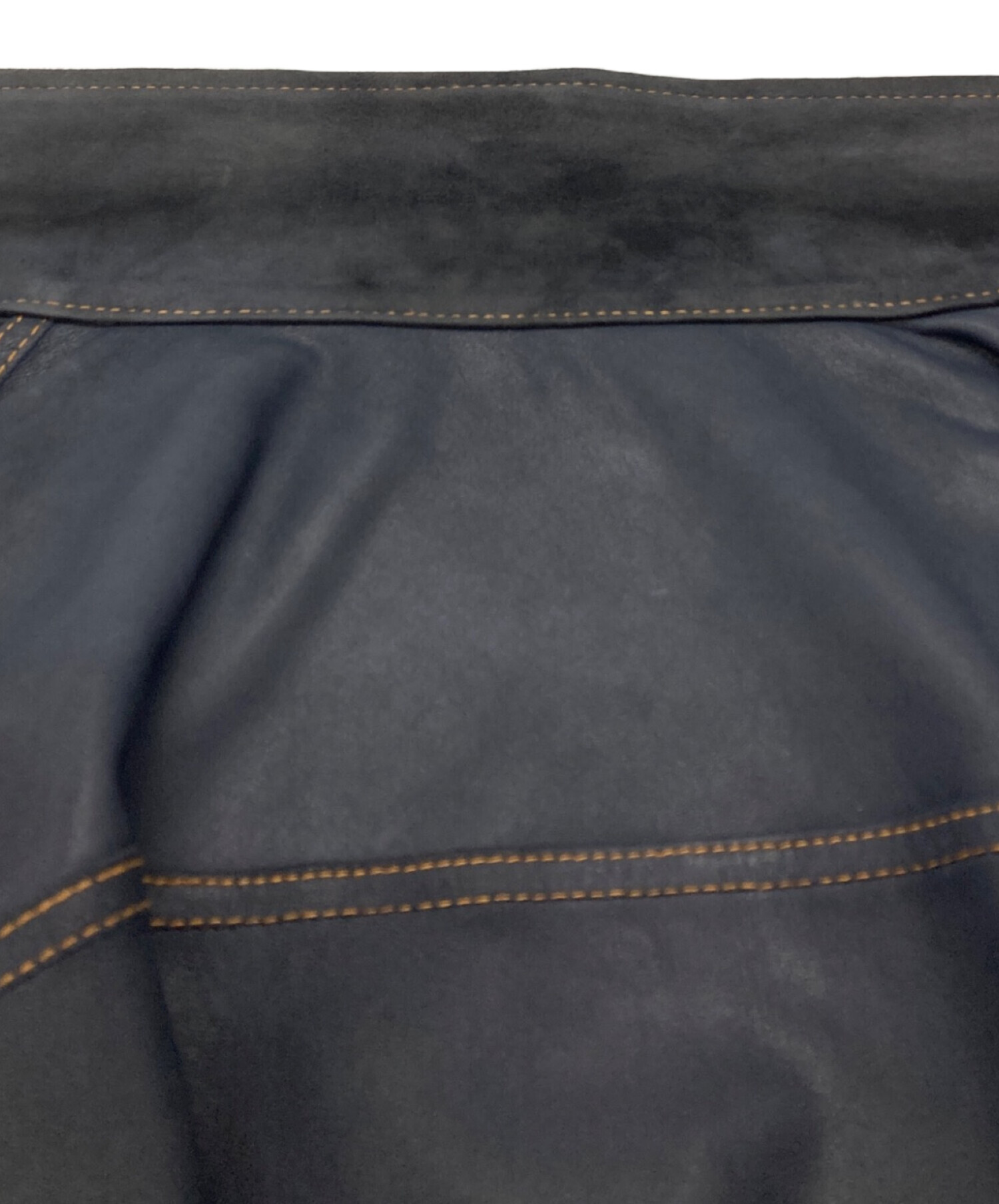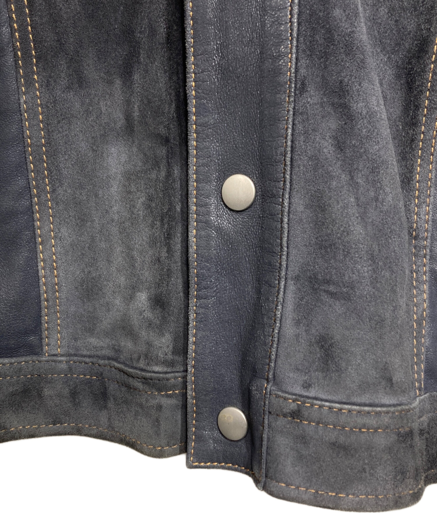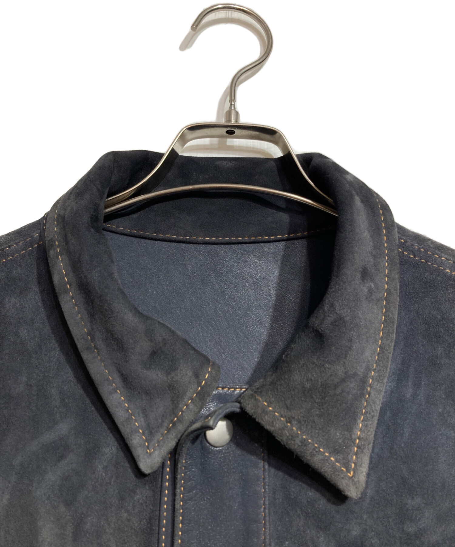 | スタッフコメント | スナックエヌジーエルが放つ、ゴートレザーの表革とスエードを巧みに切り替えたリバーシブルジャケット。深いネイビーが素材のコントラストを引き立て、無骨な表情と洗練された艶が共存します。一着で二つの個性を愉しめる、大人の遊び心溢れる贅沢な一着です。 |
