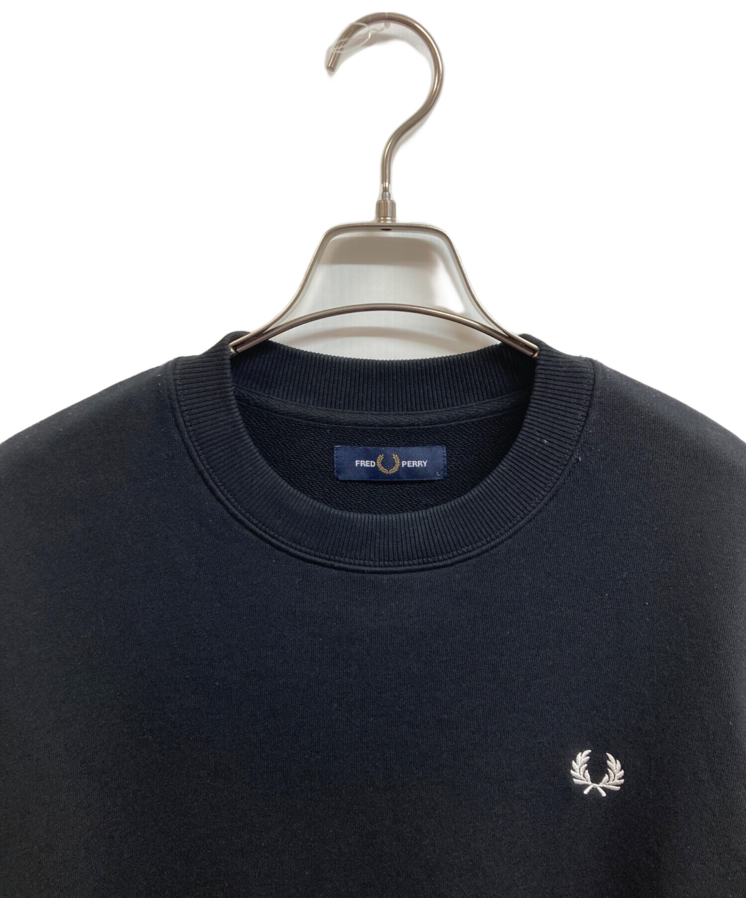 • FRED PERRY(フレッドペリー)FRED PERRY (フレッドペリー) クルーネックスウェット ブラック サイズ:Lの古着・服飾アイテム 毛玉有