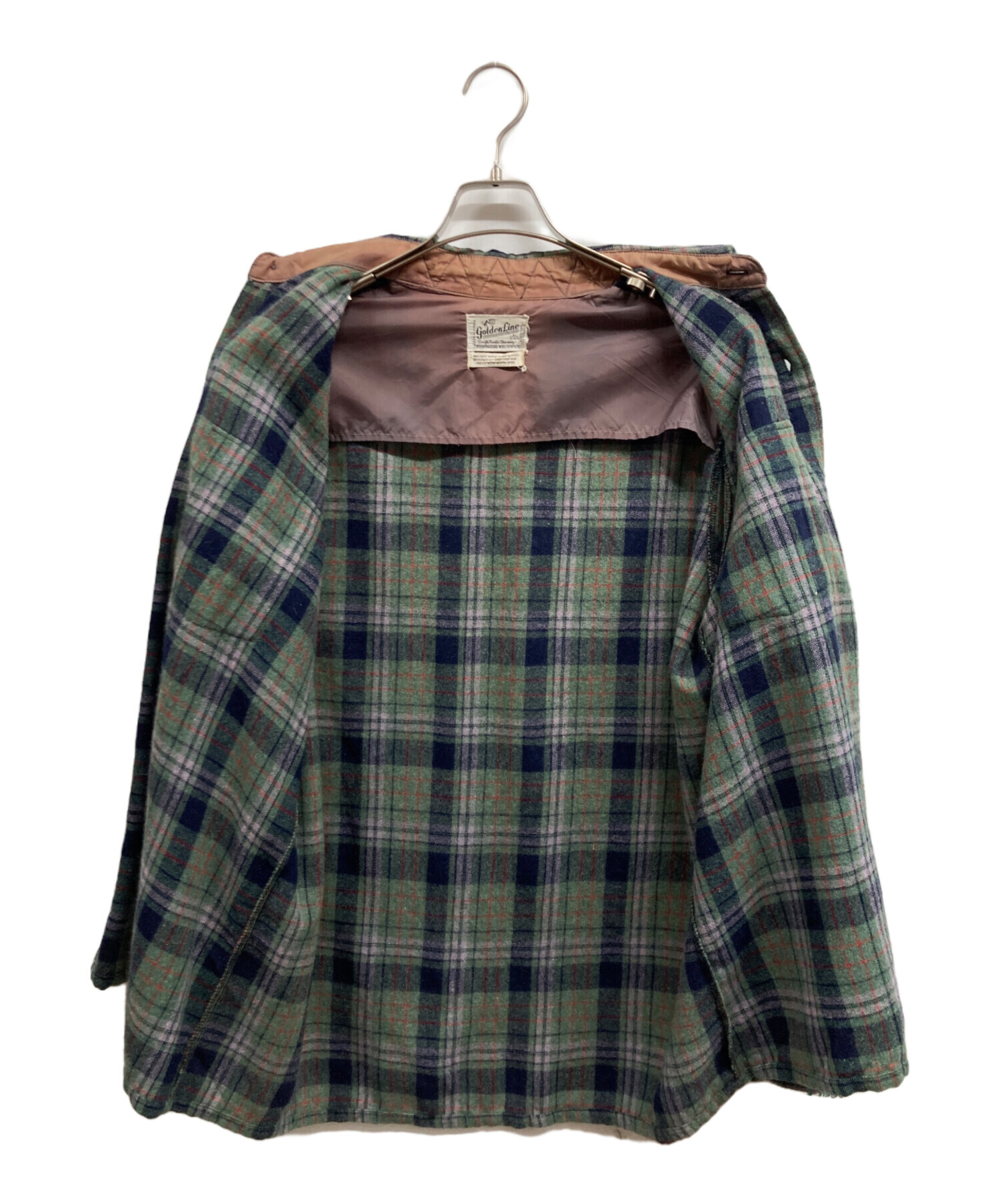 • golden Line(ゴールデンライン)Golden Line (ゴールデンライン) 70s ウールチェックシャツ グリーン サイズ:Lの古着・服飾アイテム 毛羽立ち有