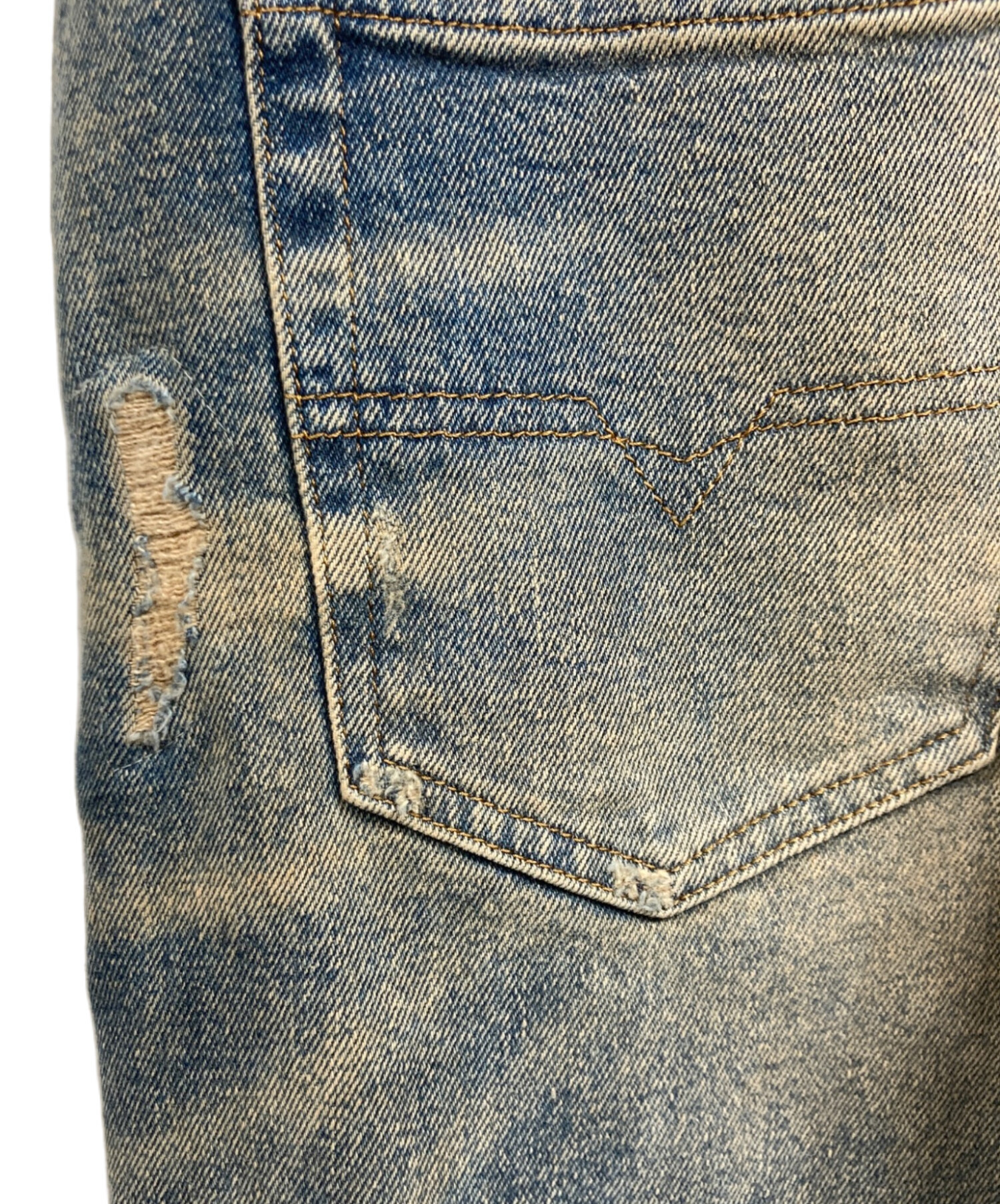 | 状態 | こちらの商品はあまり使用感の感じられない商品ですが、ダメージ加工、ヴィンテージ加工が施されています。また、着用に伴う細かな傷、ヨゴレ、店頭にて展示販売を行っている為、記載に無い細かなキズ、汚れが見受けられる場合がございます。 |