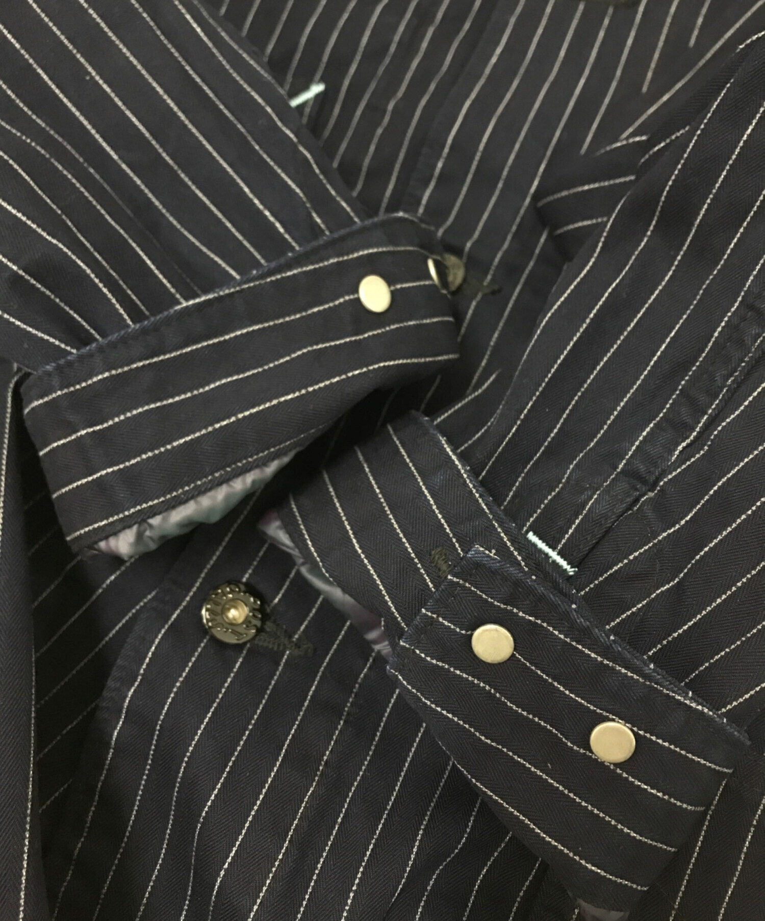 目立つシミや汚れ、におい等がある場合は商品画像や説明文にて極力表記させていただいておりますが、中古品という商品の特性上、全ての瑕疵や不備、洋服直し箇所を撮影・記載をすることは難しくなっております。また、ほとんどのアイテムは店頭と併売しておりますため、出品掲載時からコンディションが変動している場合もございます。あらかじめご了承くださいませ。