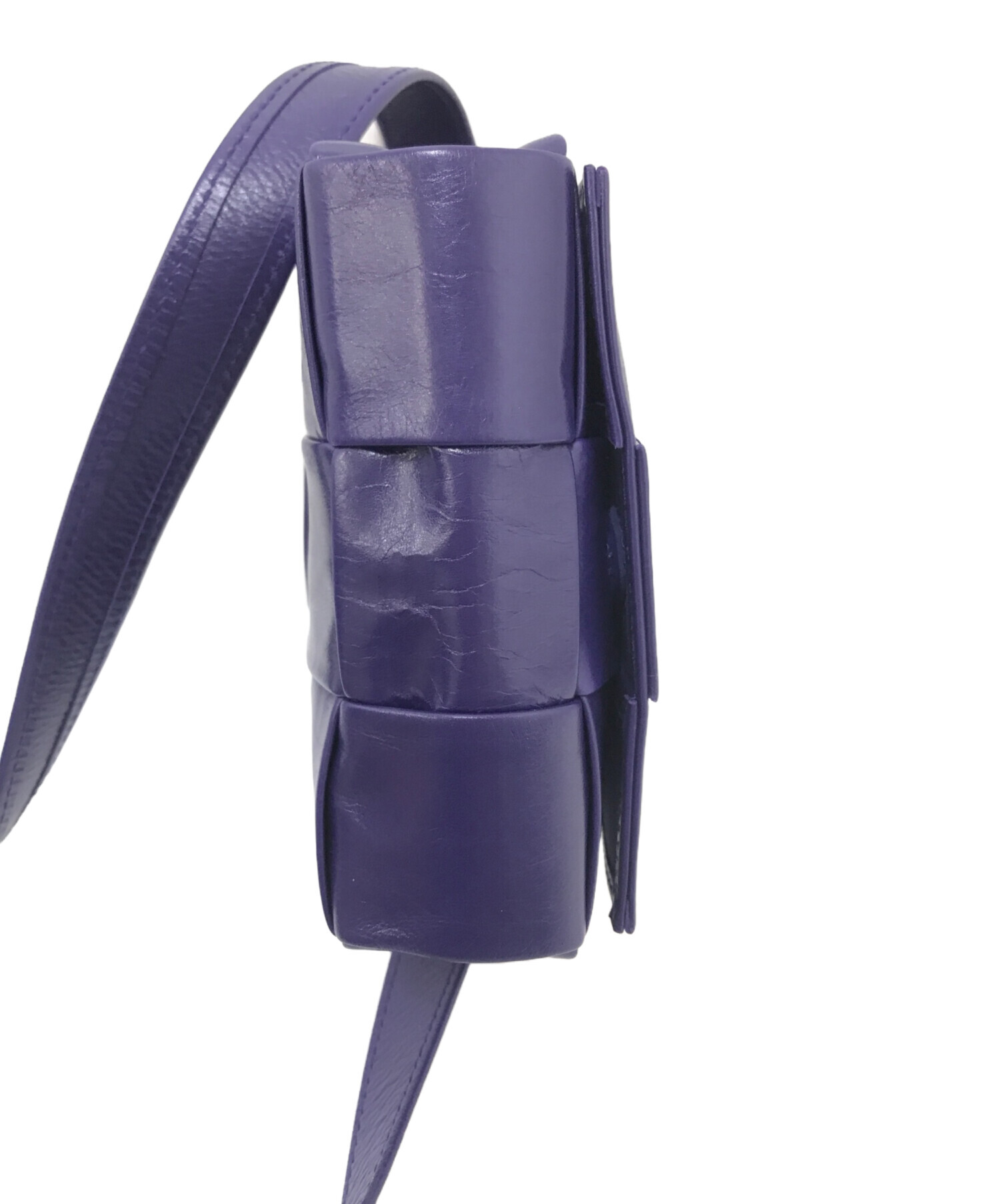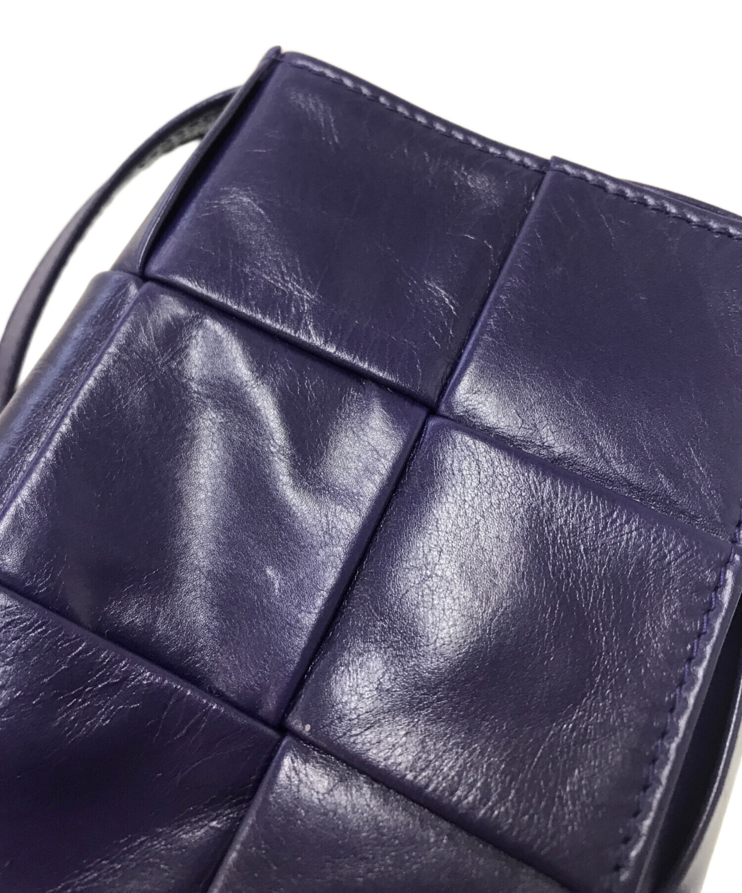 | スタッフコメント | BOTTEGA VENETAを象徴するイントレチャートのショルダーバッグ。落ち着いた紫が普段使いしやすく、コーディネートの差し色にもなります。小さい財布も入るこのサイズ感が絶妙です。 |
