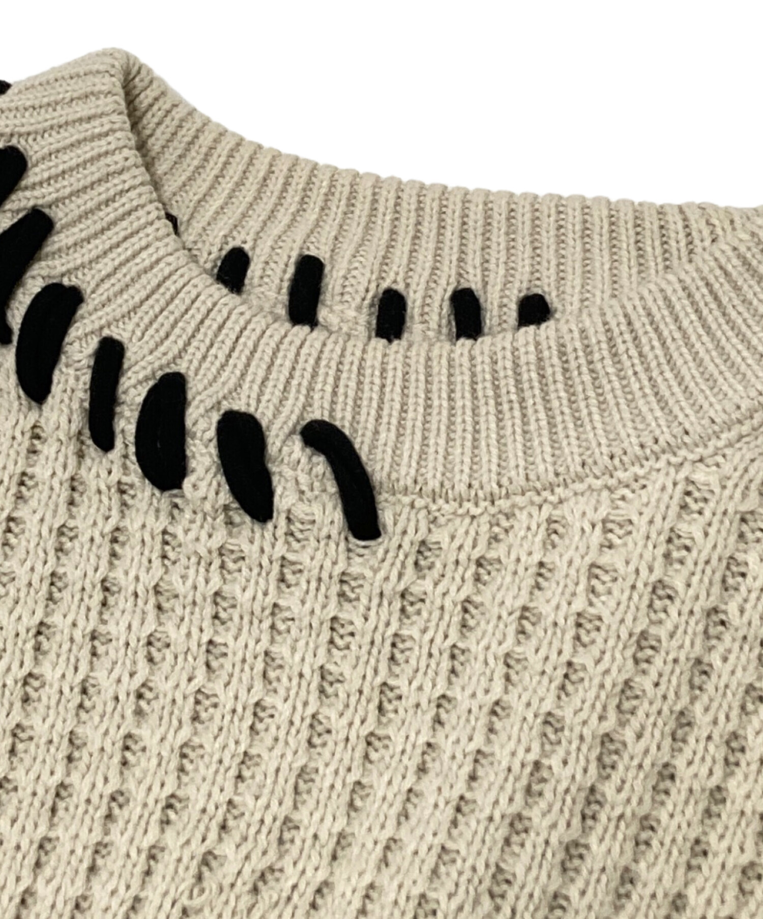 鬼ワッフルクレイジーステッチクルーネックニットプルオーバー