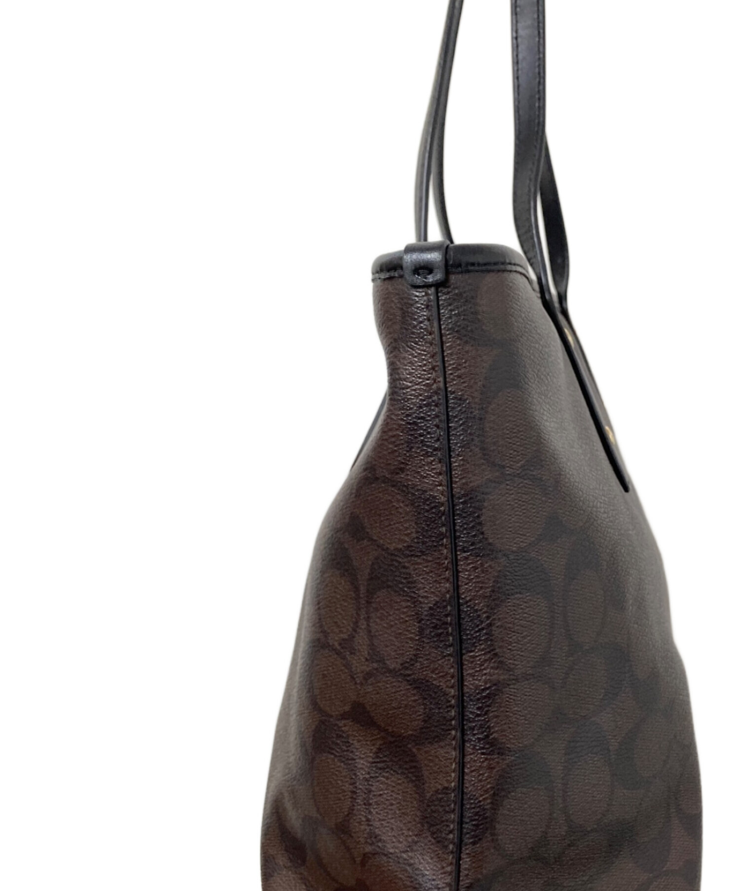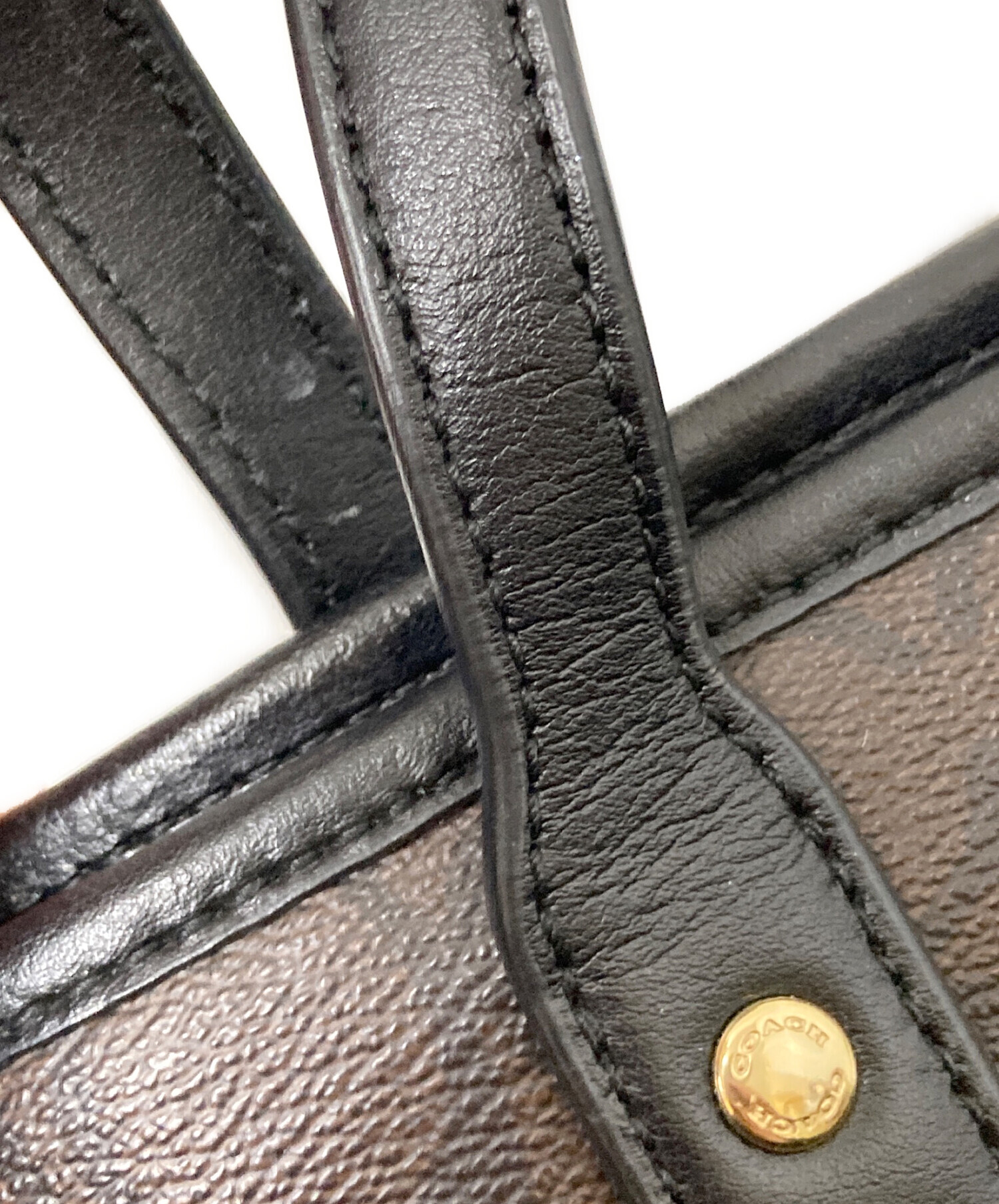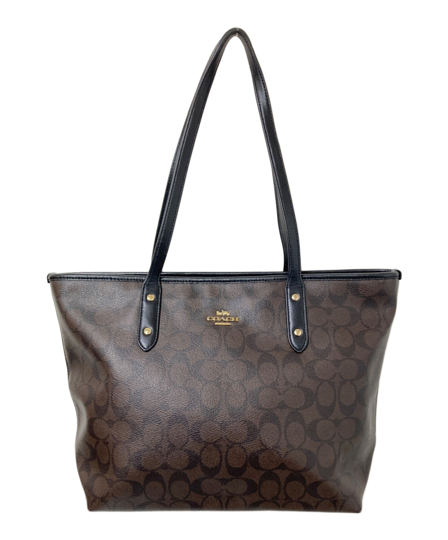 • COACH(コーチ)COACH (コーチ) シグネチャートートバッグ ブラック×ブラウン サイズ:下記参照の古着・服飾アイテム 側面スレ