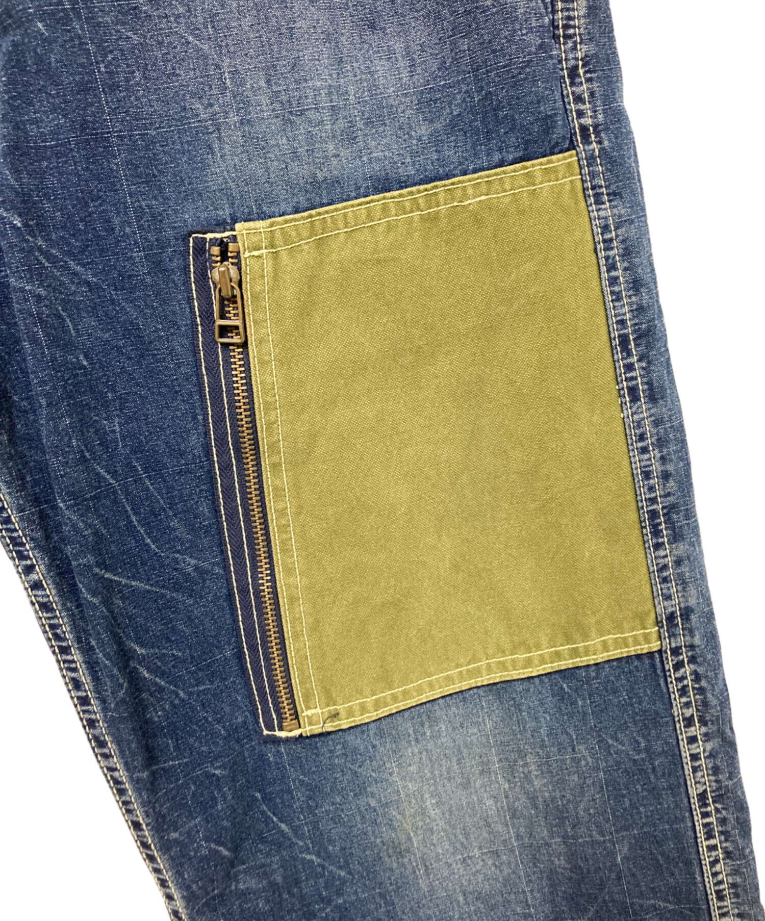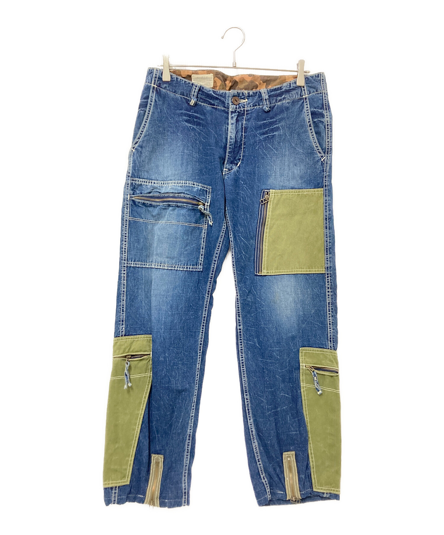 • AVIREX(アヴィレックス)AVIREX (アヴィレックス) 異素材ドッキングデニムパンツ インディゴ サイズ:Lの古着・服飾アイテム フロント色褪せ